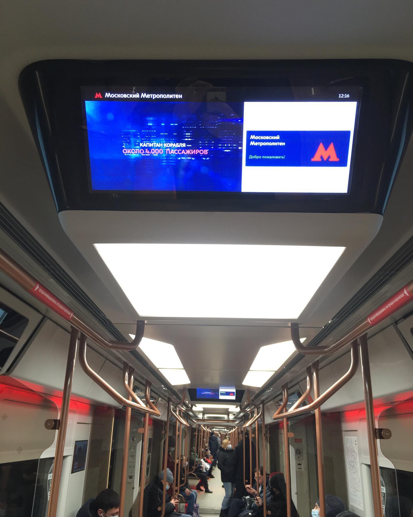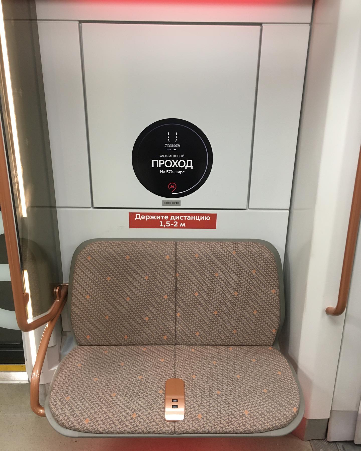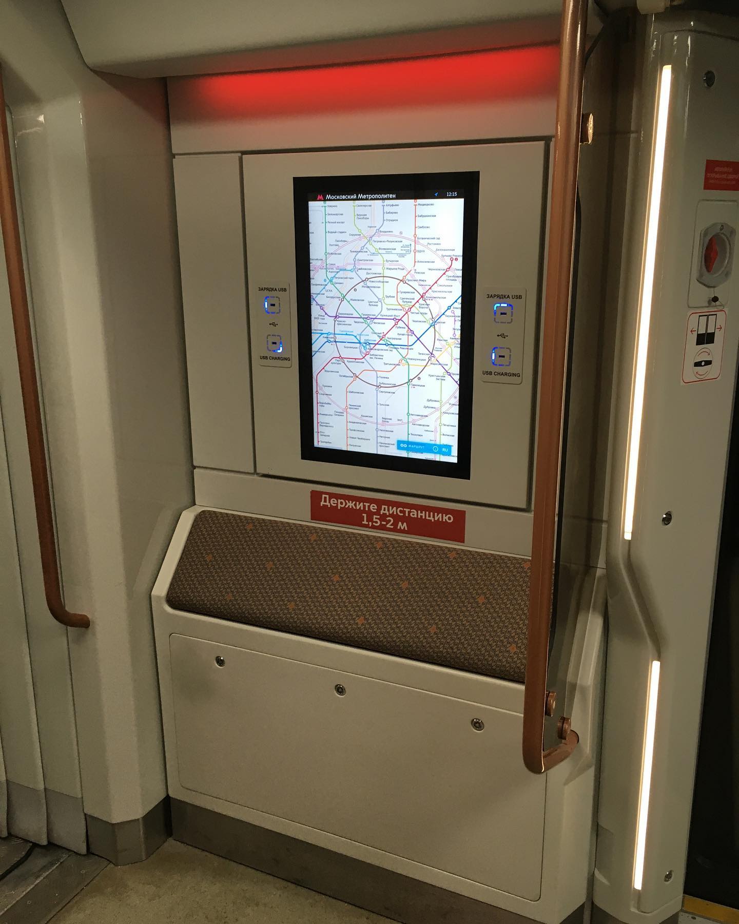 Встретил обновлённую Москву. УСБ зарядники в креслах, более широкие дверные проемы и проходы между вагонами, экраны на потолке, обновлённое оформление и цвета. Будущее здесь, в очередной раз.