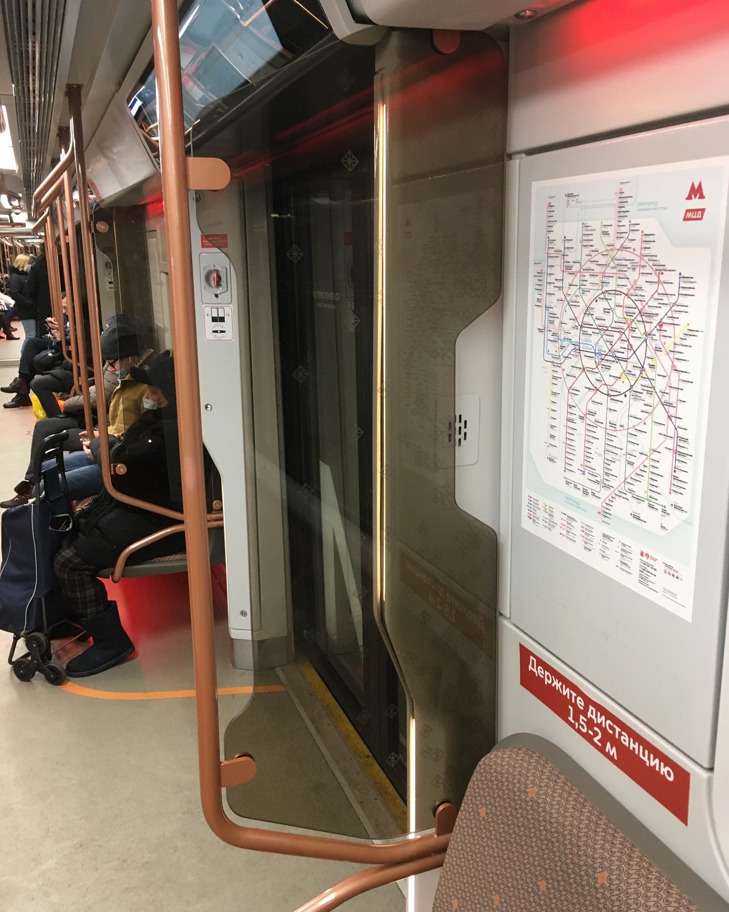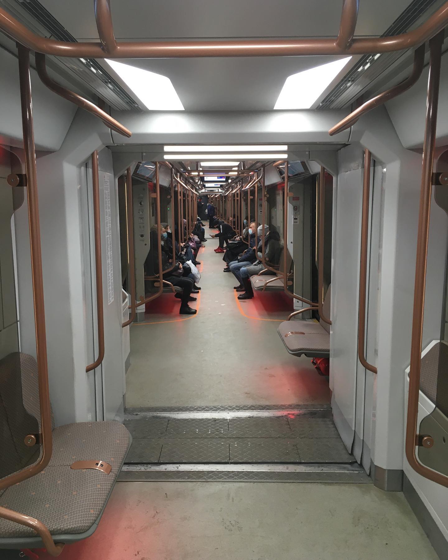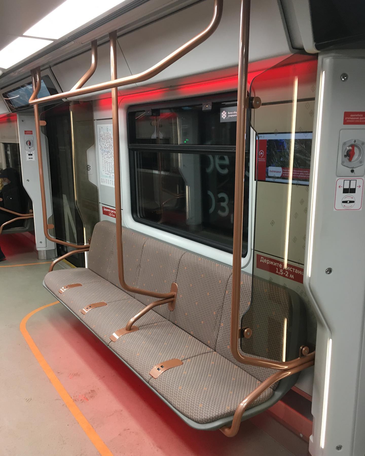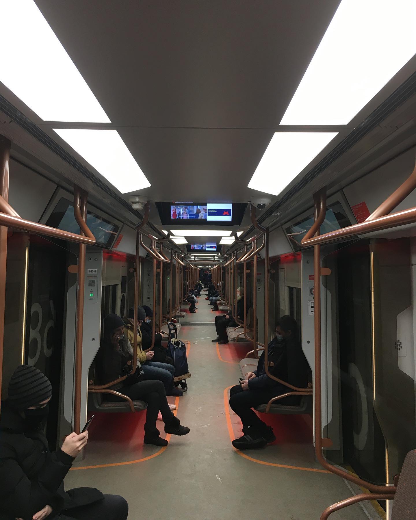 Встретил обновлённую Москву. УСБ зарядники в креслах, более широкие дверные проемы и проходы между вагонами, экраны на потолке, обновлённое оформление и цвета. Будущее здесь, в очередной раз.