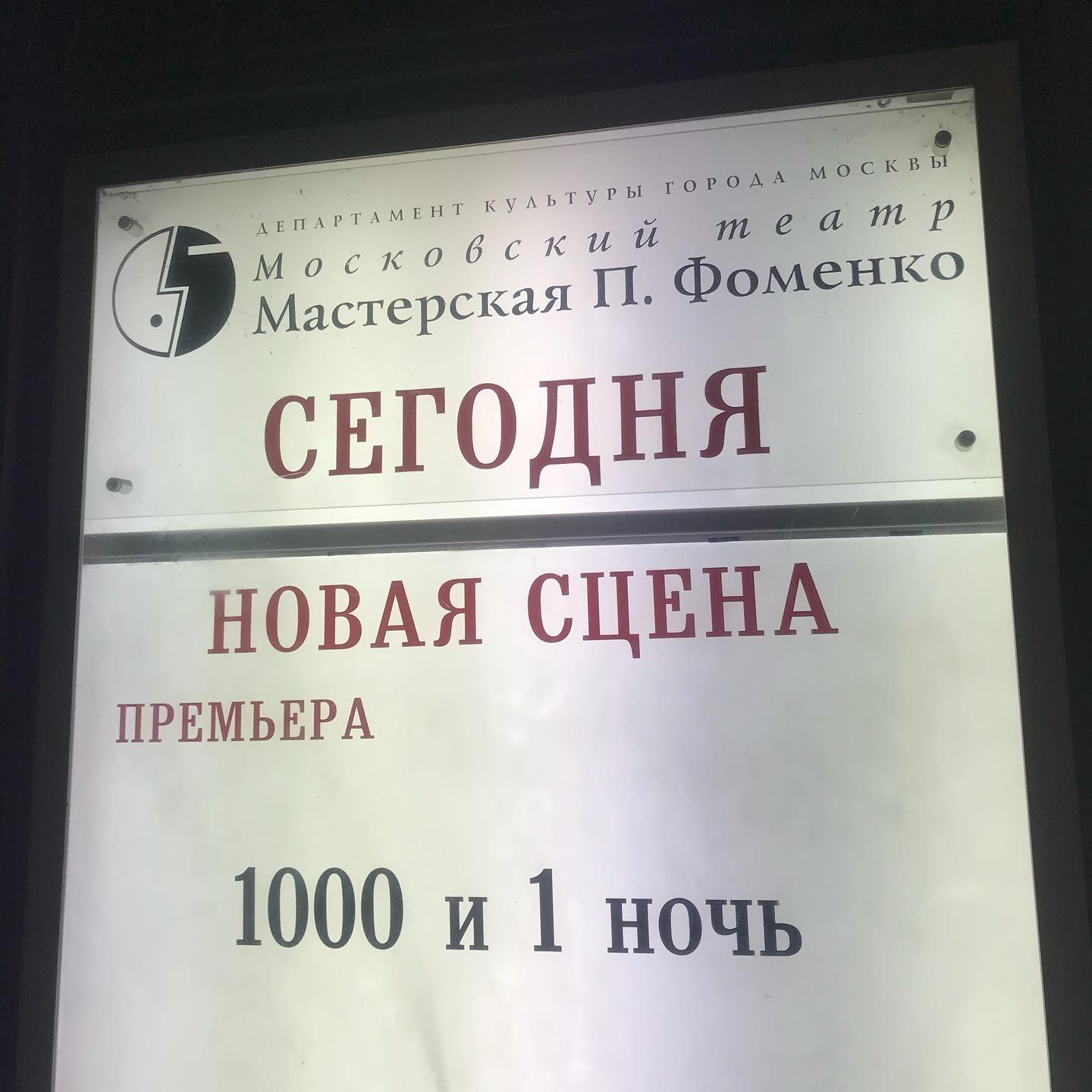 Посмотрел в отличной компании спектакль Мастерской Петра Фоменко «1001 ночь» — отдельное спасибо друзьям за идею вечера. Восхитительно как звуком и цветом при статичной декорации создаётся движение и общее впечатление, понравилась пластика и ловкость актеров (как они умудряются так скакать и не ломать руки-ноги?), и сопровождение струнным оркестром. Здание необычное, с многоуровневым холлом и пространствами, вижу такое впервые.