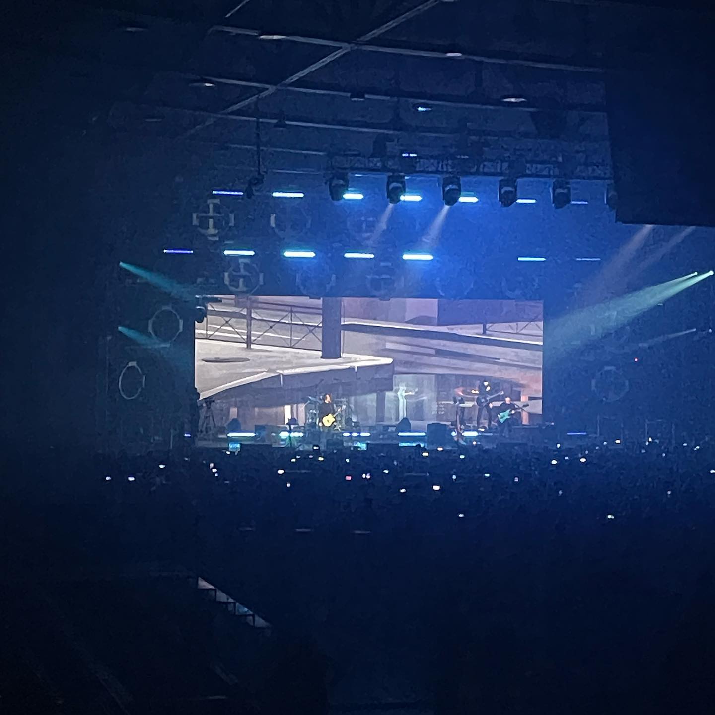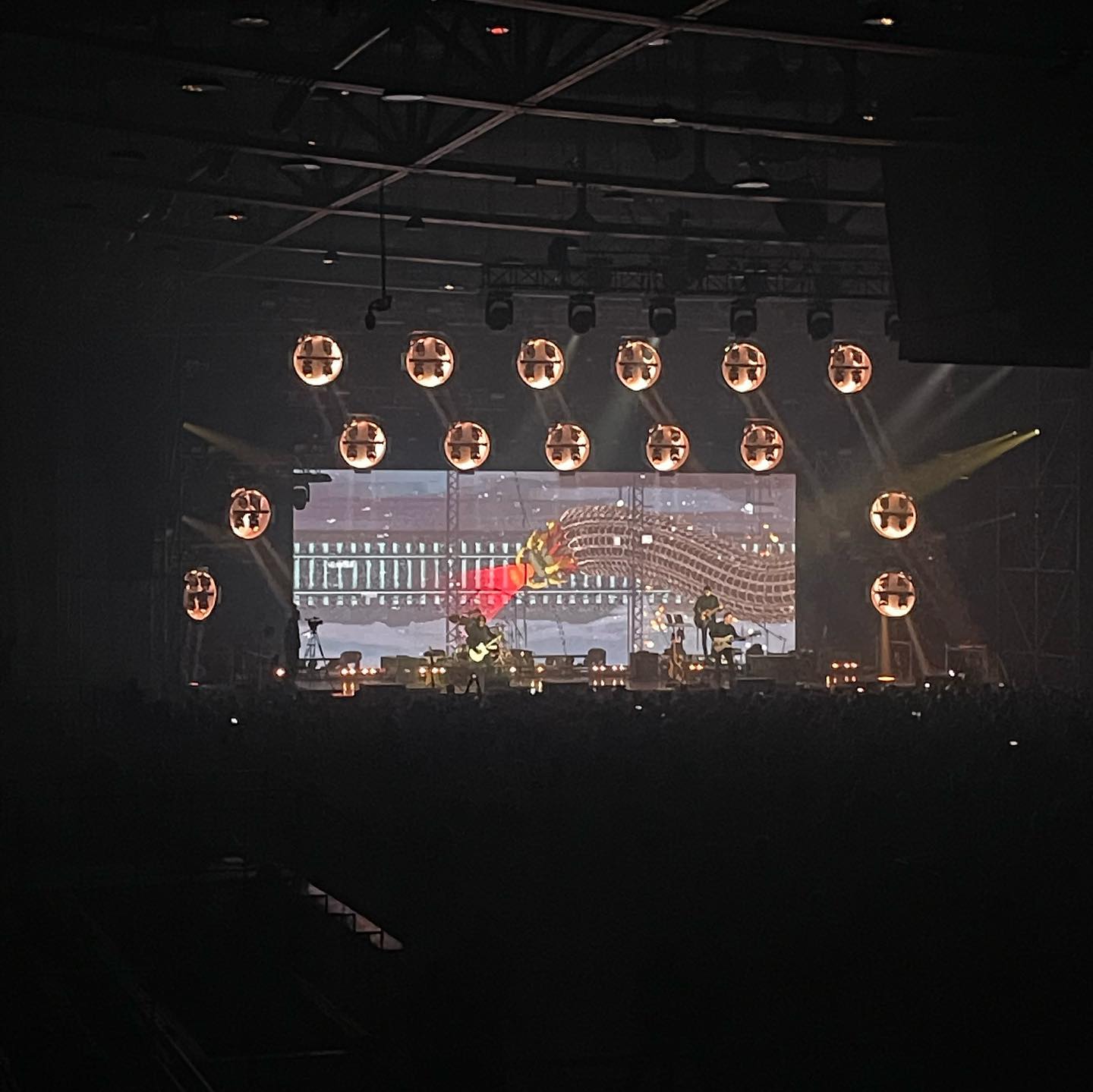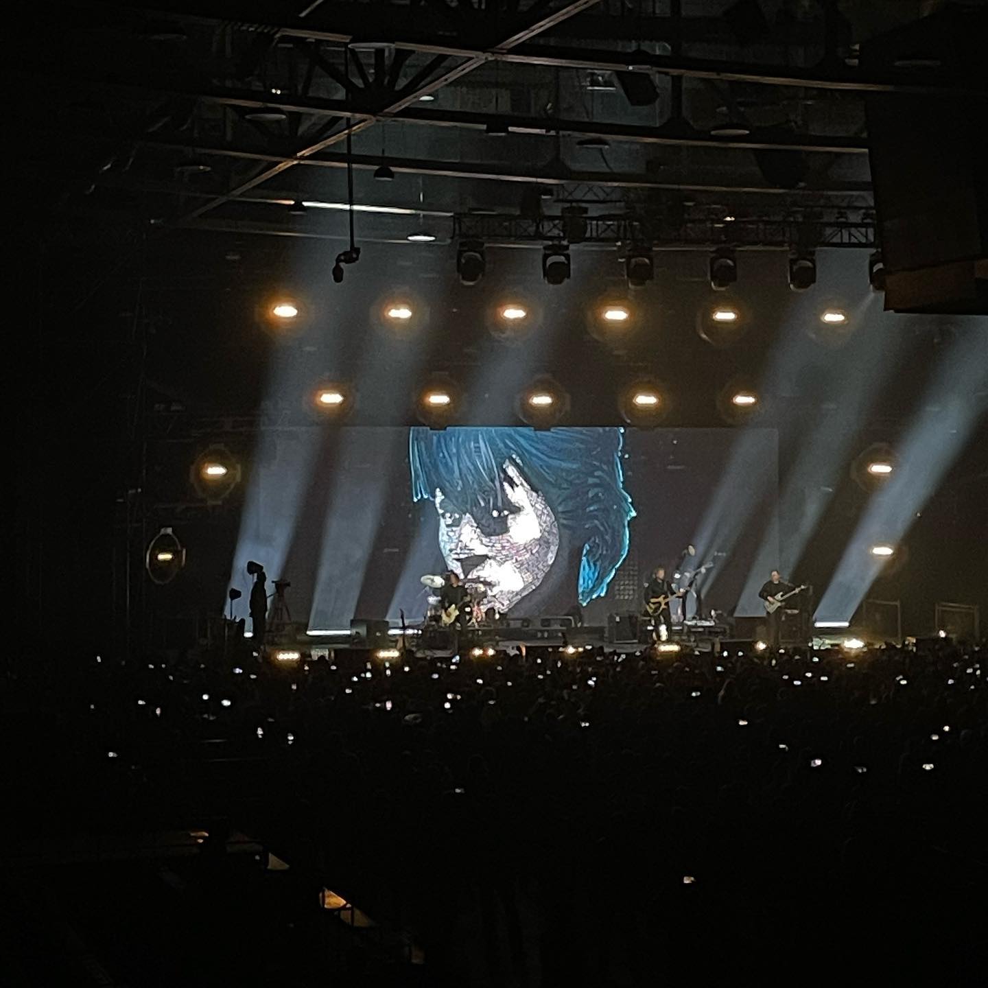 Несложная штука — синхрон архивных кадров с живым видео со сцены на одном экране — просто вышибает табуретку из-под ног: в конце Пачки сигарет Цой из 24 июня 1990 полуоборачивается к группе, кивая к окончанию трека, и постаревшие на 3 десятка лет живые музыканты на сцене финалят трек. До мурашек