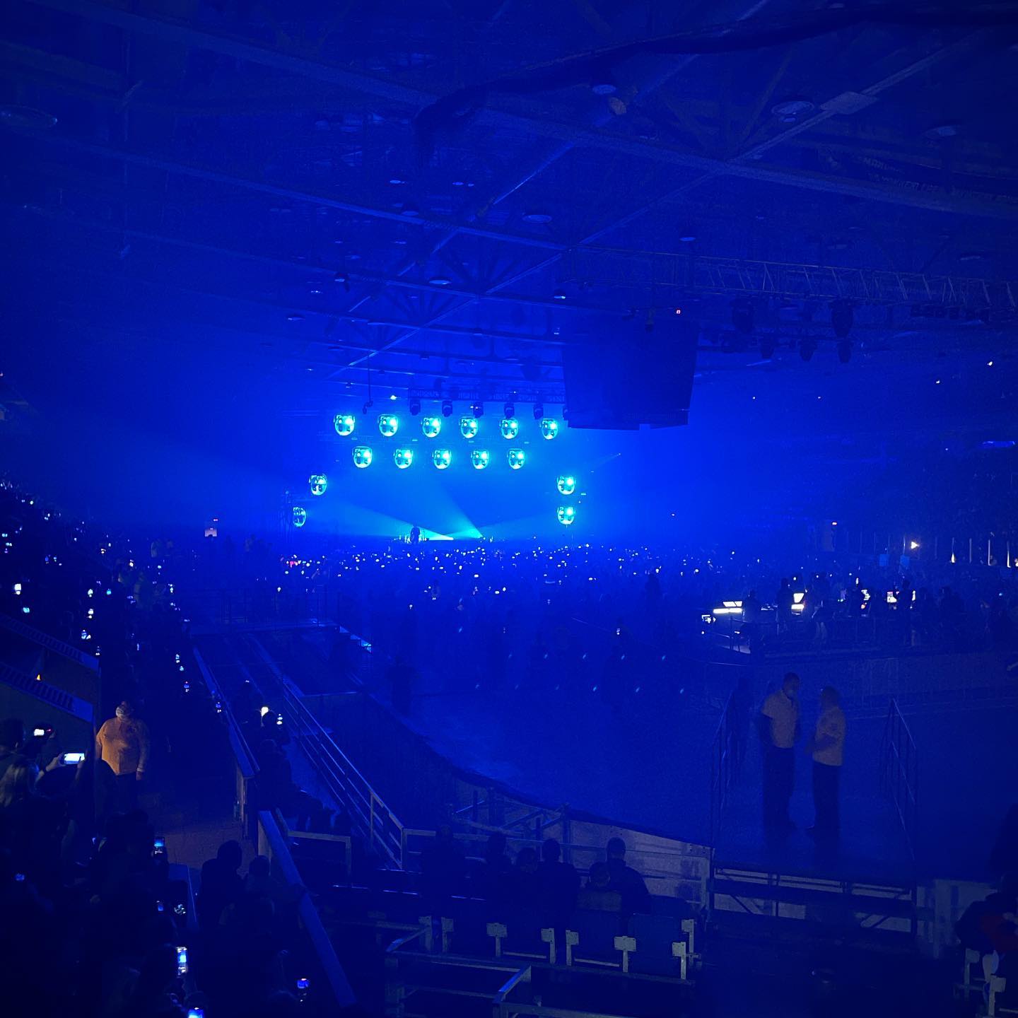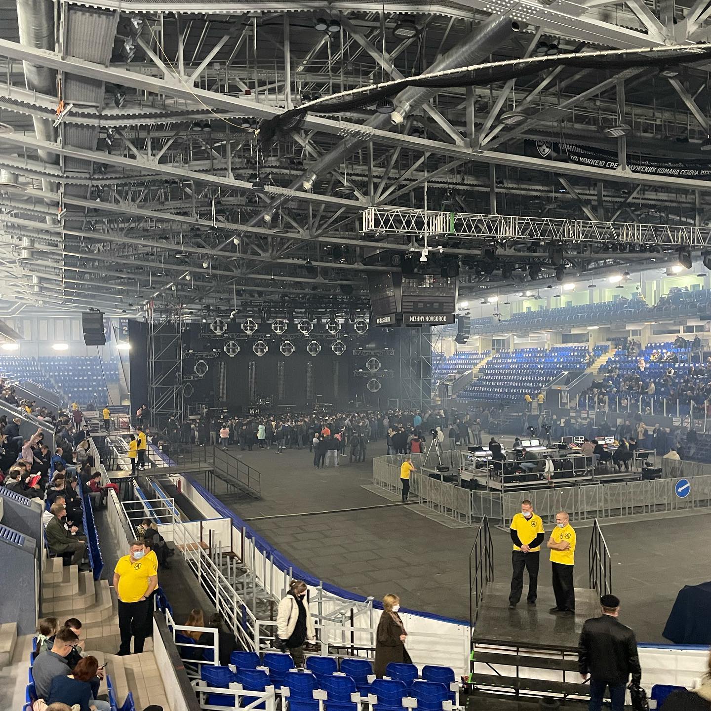 Организация — на тройку: билеты я купил в приложении Vibe (смарт-система от Ticketscloud, с чудо-цыфровой зашитой, встроенными перделками и возможностью типа безопасно перепродать если что). Коды из приложения не работали на входе, а всех продвинутых умников сгоняли на «проблемный» подъезд, где разбирались отдельно (тупо специально обученным военно-морским глазом смотрели в телефон). Гардероб не работал. Ну хотя бы провели в непростых условиях шоу, и тестирование на повидлу организовали, и на том спасибо.