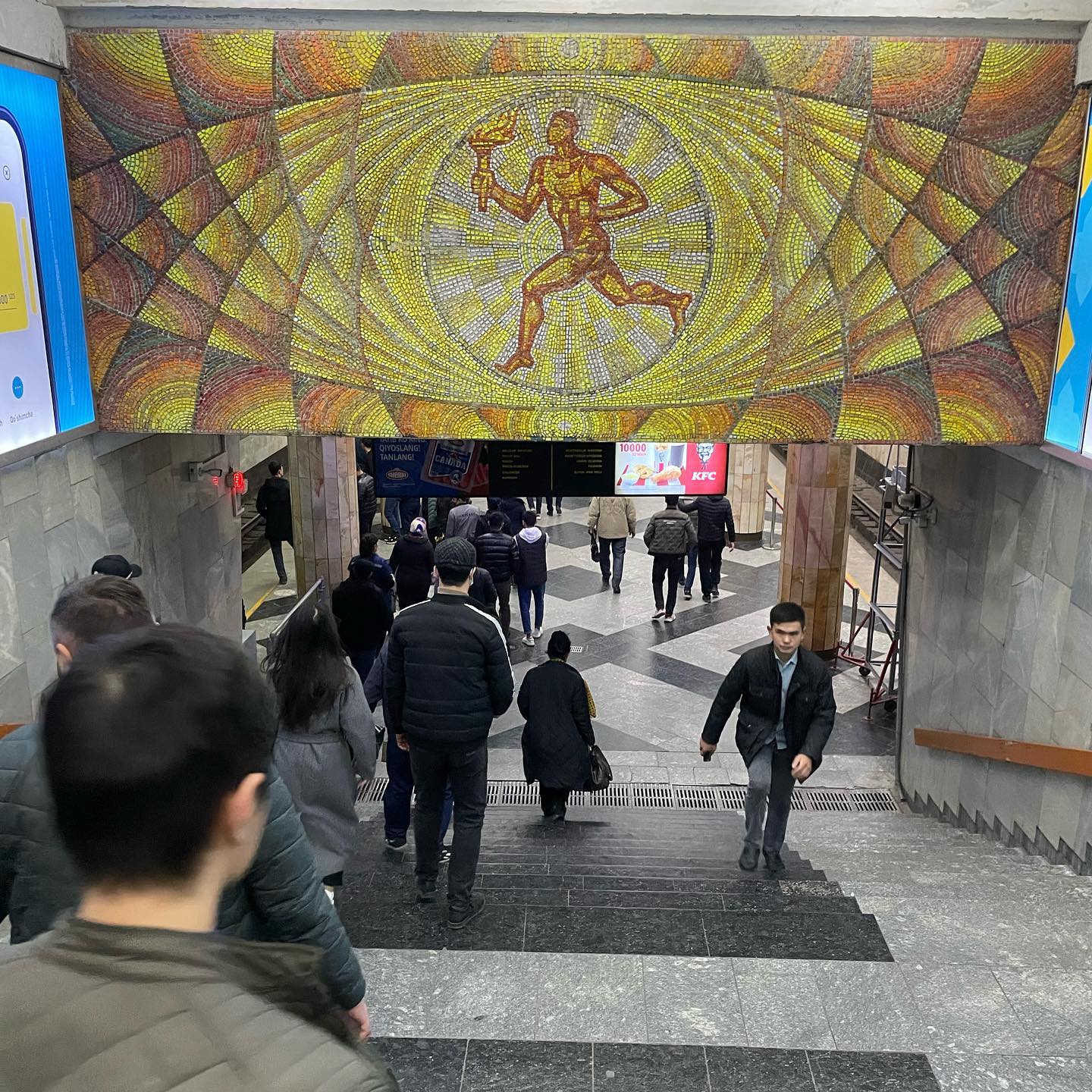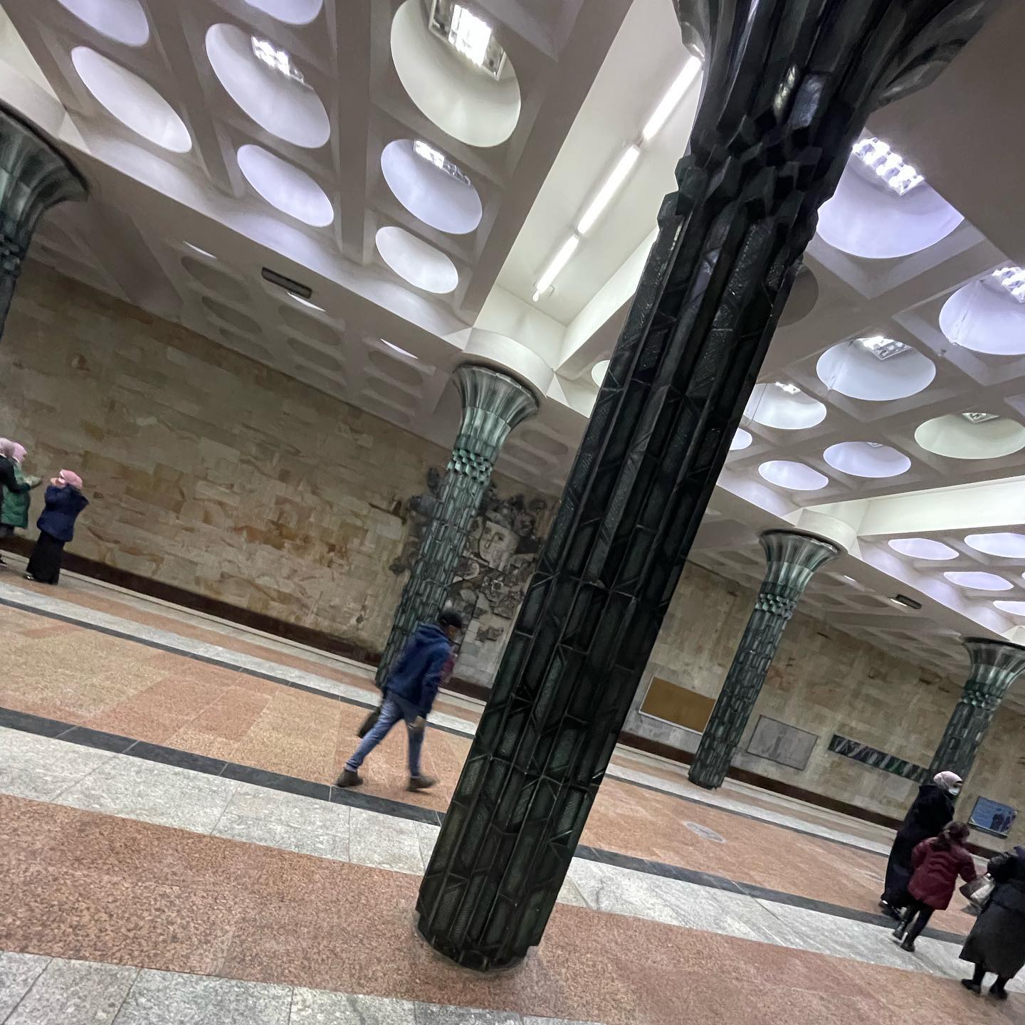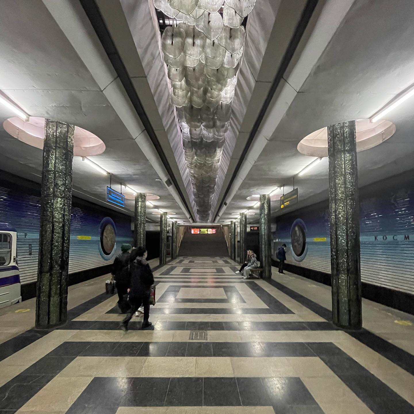 Проехались по нескольким станциям и веткам, посмотрели классные орнаменты, фигуры и камни, оч интересная станция с дизайном на космическую тему (но в портретное сходство с подписанными космонавтами художники увы не смогли). Интересная деталь про фамилию Джанибекова (гуглите, Шура)