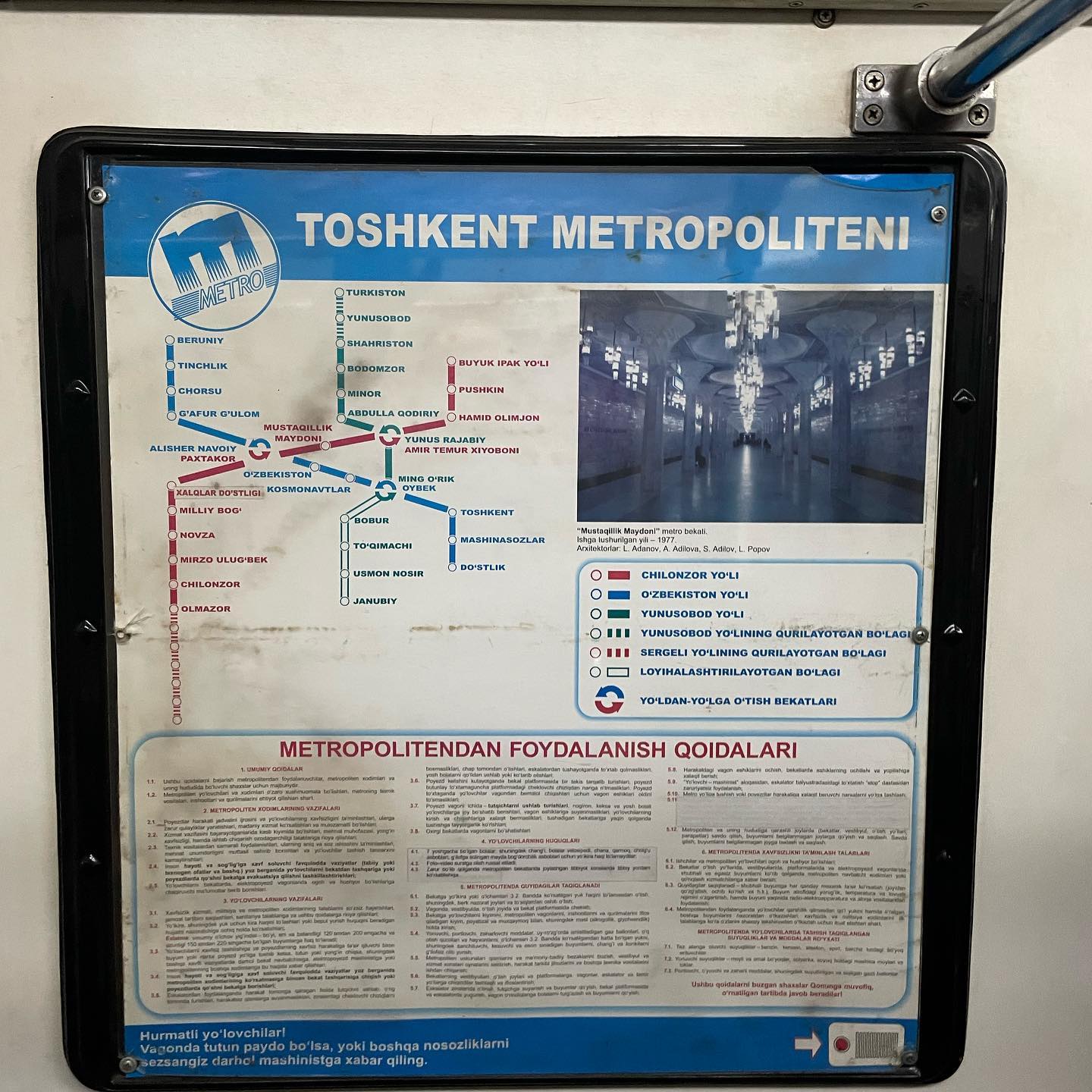 #васяездитнаметро в Ташкенте. Ещё советская постройка развивается, открываются новые линии и станции. Поезда — мытищинского производства номерные, и раскрашенная в национальные цвета Москва (несколько новеньких составив). Ещё из занятного — абсолютно такого же как в Москве объемного шрифта названия станций на вестибюлях и переходах.