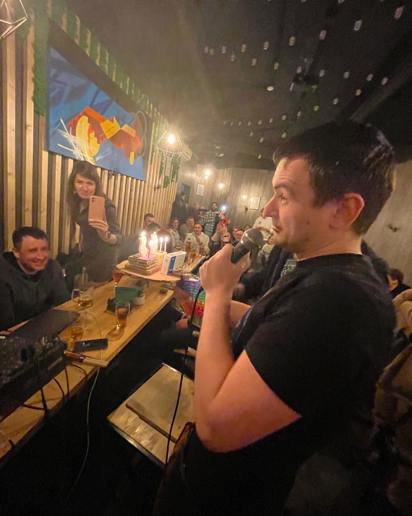 Сначала был день рождения Коли в баре, и если 10 дней назад, принимая приглашение, я не понимал как и зачем вообще брать в руки гитару, да и на само мероприятие ехал без планов на музыку, то оказавшись в атмосфере семьи MostWanted, тепла и любви я вдруг ощутил силы, право и потребность творить и отдавать. Я играл для друзей песни, которые они хотели, и обнимал их и изо всех сил желал удачи и здоровья в перерывах. Неожиданно это оказалось мне одновременно по силам и желаемо.