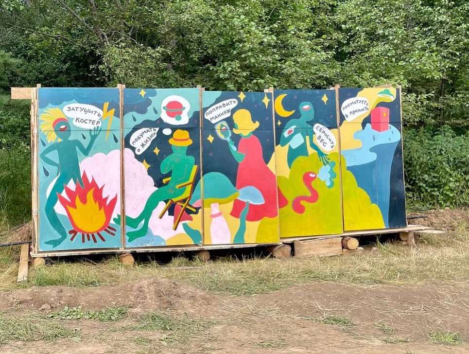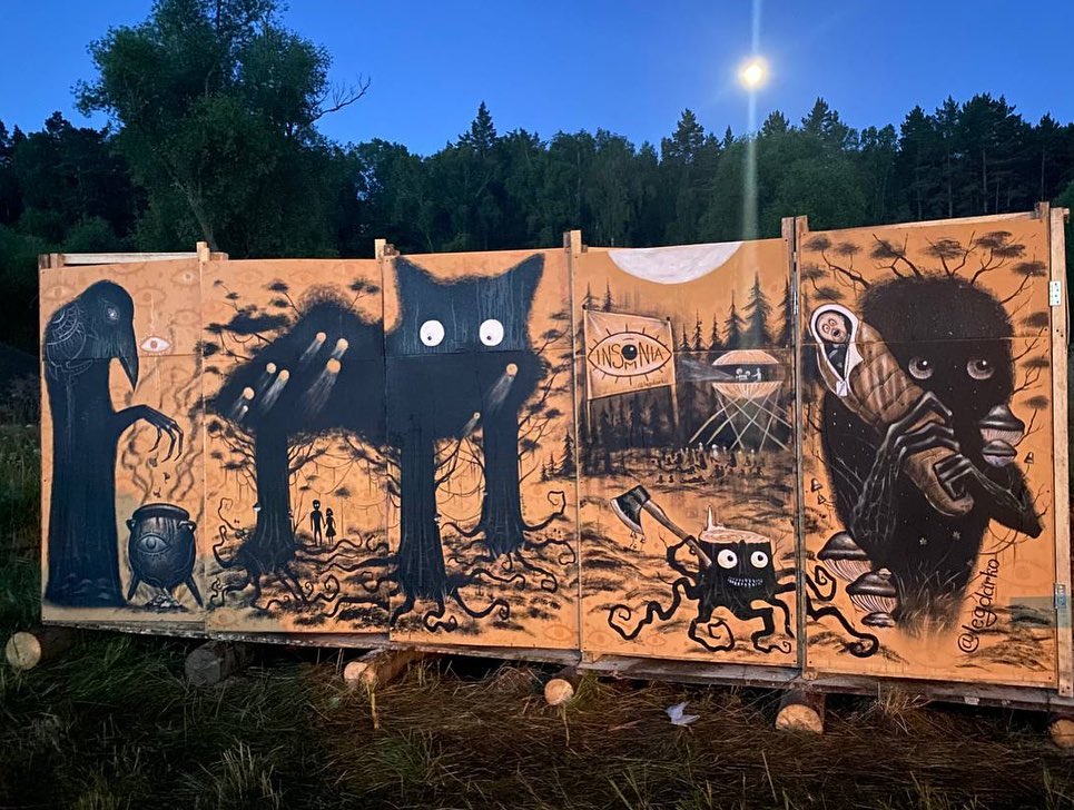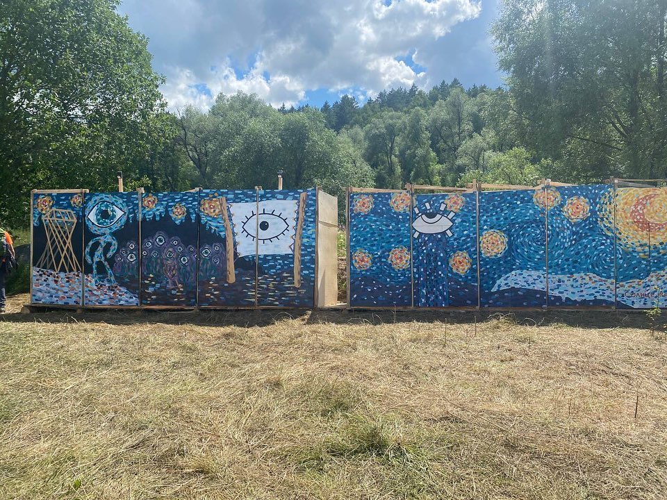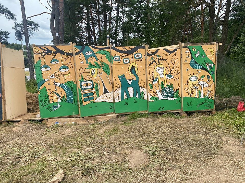 В дополнение рассказа про Бессонницу не могу не зафиксировать эту Каллекцию™ декоров фестивальных туалетов. Если люди так оформляют отхожие места — значит они творческие до глубины души. Ультравосторг.
