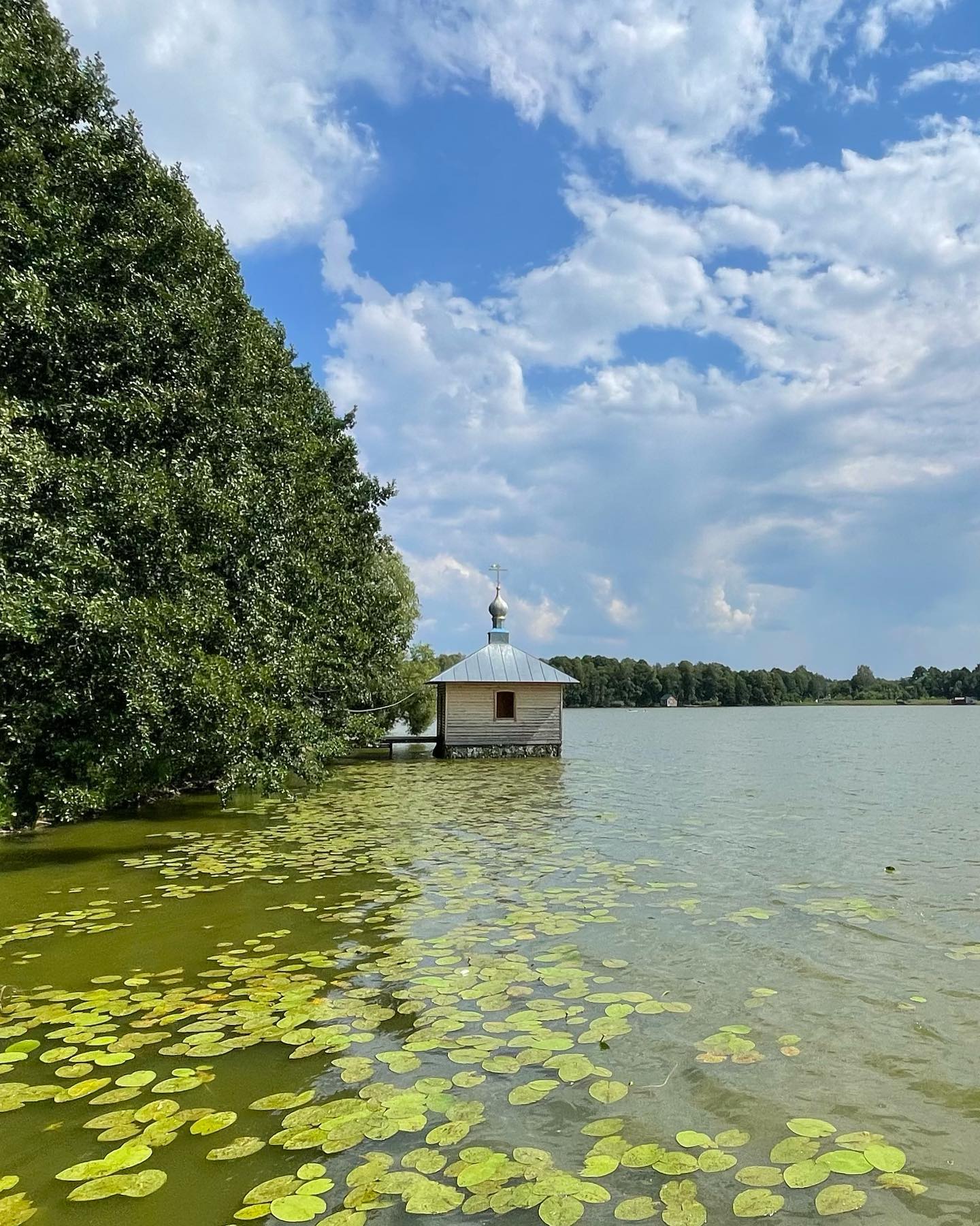 На обратном пути заехали в необычное место, монастырь на крохотном острове посреди озера— Покровская Введенская Островная женская пустынь.