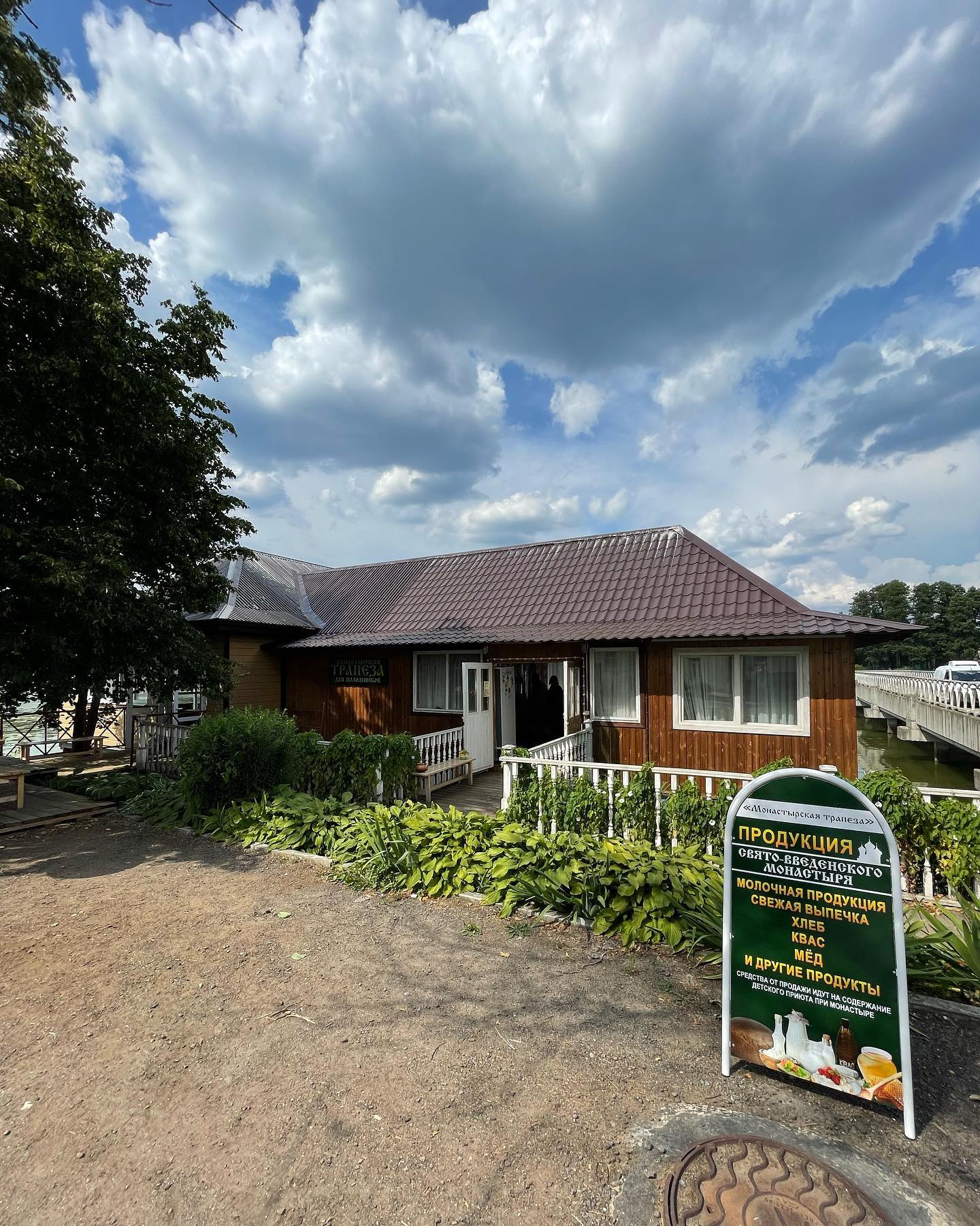Дорога через лес, мост до острова, покой и умиротворение, зелень, утки, деревня на берегах озера вокруг (и снова саперы), тишина, шелест листьев, монастырская лавка с самодельным сыром, квасом и пирожками, редкие гости и паломники. Вдруг накрыло спокойствием и безмятежностью на этом острове, и совсем не хотелось уезжать