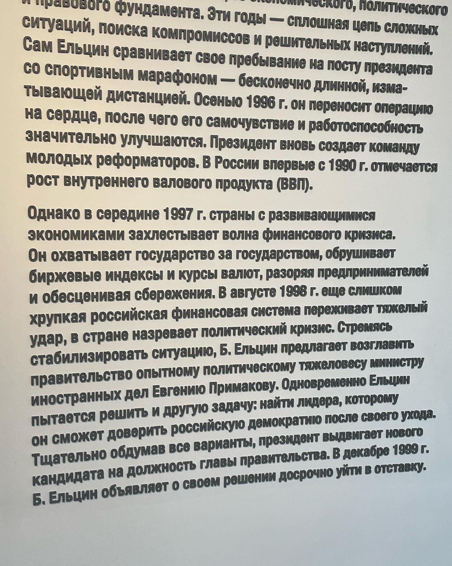 Сходили в Ельцин-центр. Крутое здание, с множеством классных пространств кроме собственно музея. Классная реализация в самом музее — здорово сделано технически, с кучей деталей времени типа сигарет Salem и мониторов 3Ne Low Radiation, с фотками видео и полуинтерактивными инсталляциями.