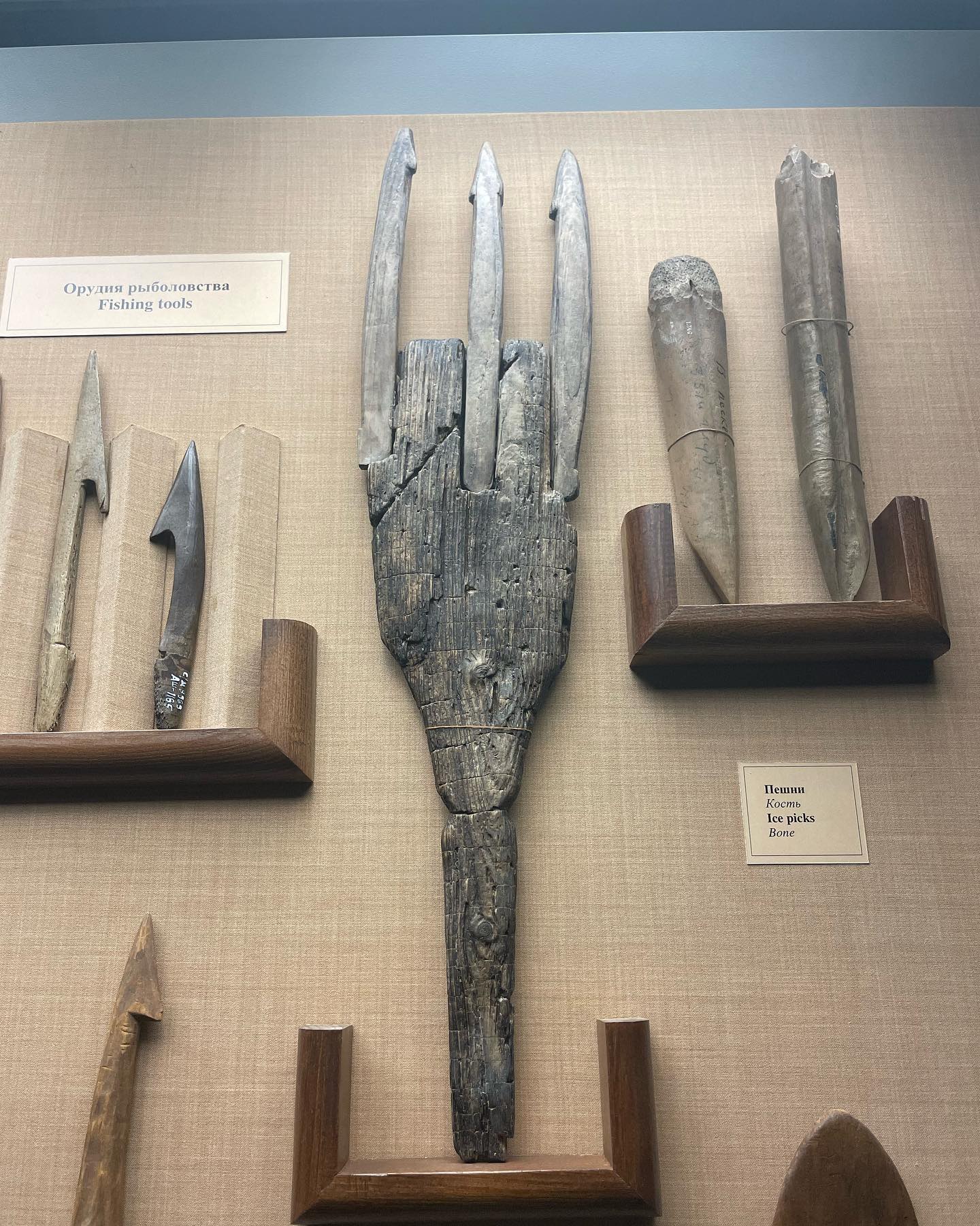 Кроме идола, впечатлили колода для сбора мёда, шитый из бересты чум и из рыбьей кожи одежда, очки для защиты от снега, совершенно абсурдная грамматика начала 20 века (перваго!!!), схема первой крепости Екатеринбурга (плотинка реально в центре), старинные деньги (рубль и остальные реально геометрически и по массе соответствуют долям в стоимости), и интересный привет из прошлогоднего путешествия #узбекистанинг — часть мраморного декора мавзолея Гур-Эмир в Самарканде (трофей Екатеринбуржца А.Баранова из похода 1877 года)