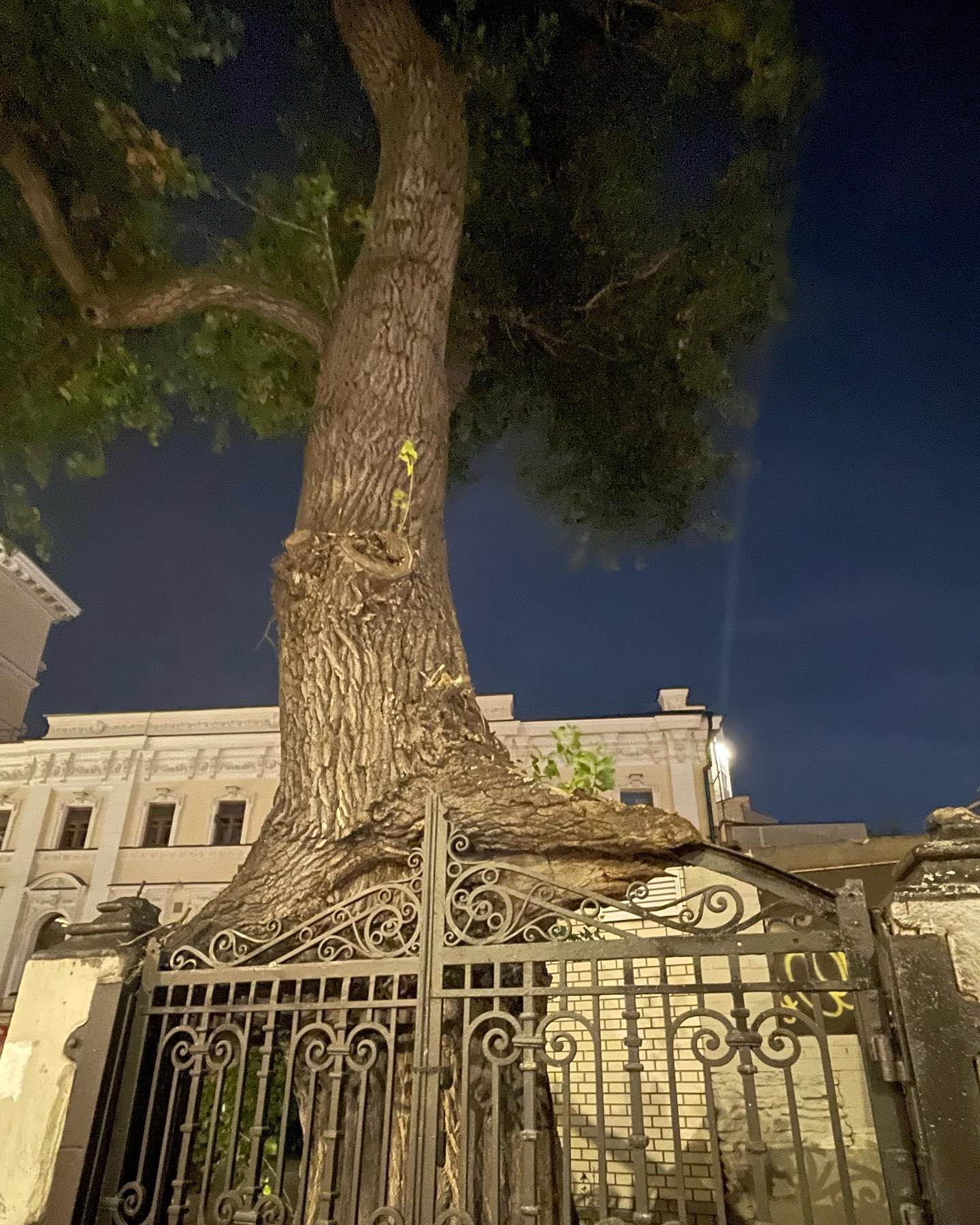 После концерта прогулялись по городу. Впервые обратил внимание на гигантское вросшее в ворота дерево у Дома Журналиста