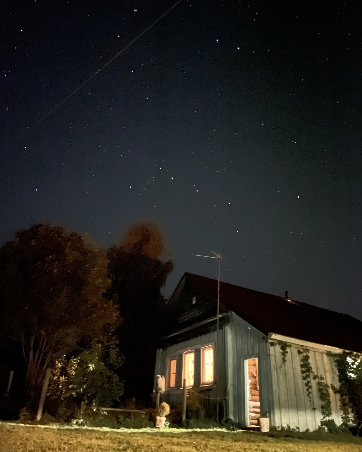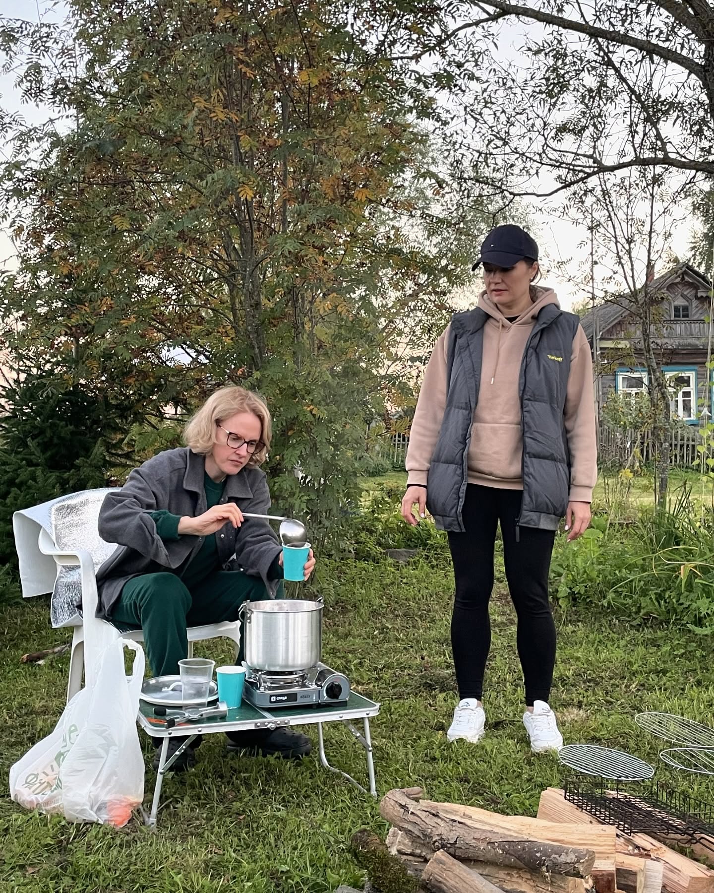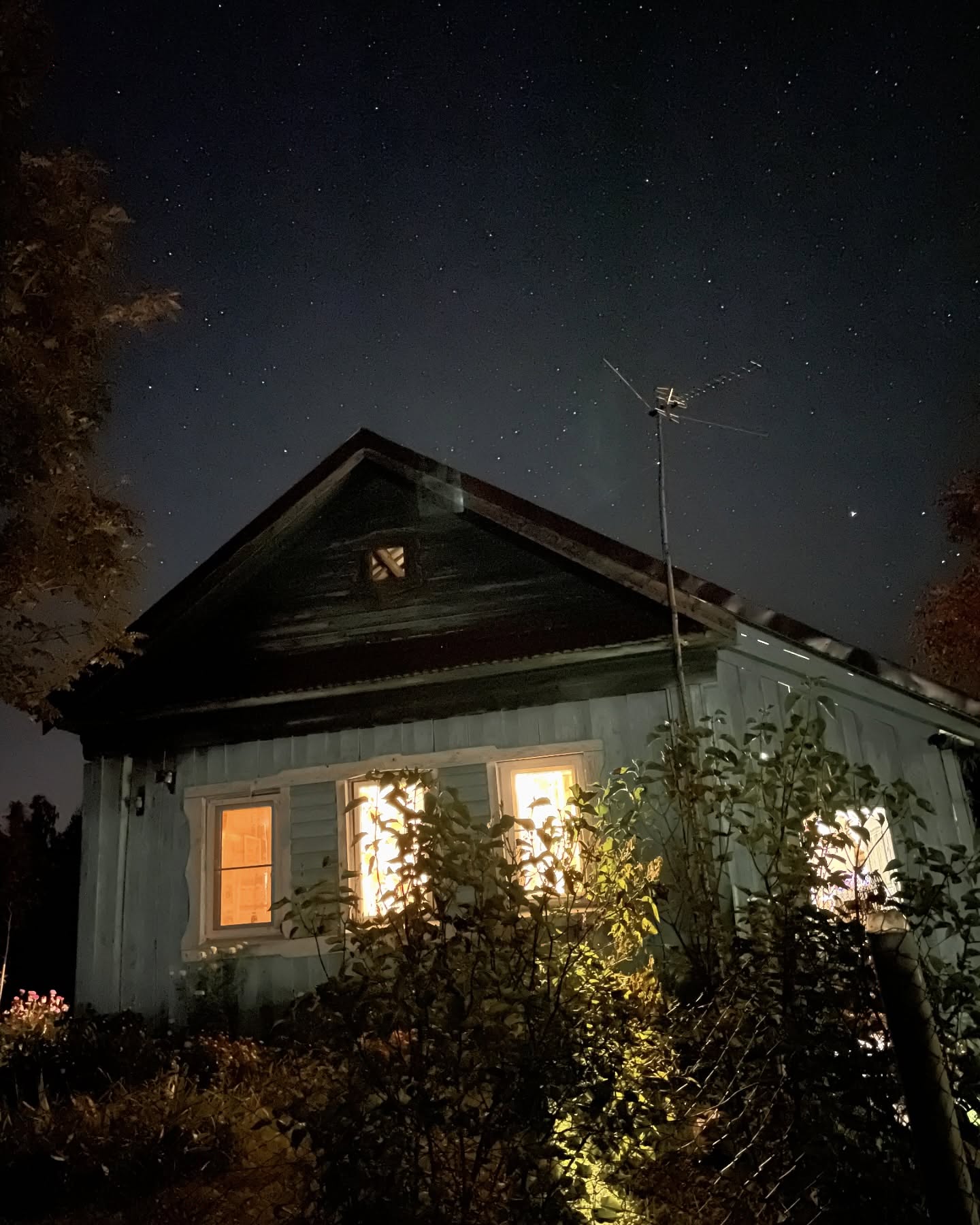 Выходные в полузаброшенной деревне друзей в Тверской области. Костер, шашлык, разговоры, собаки, небо со звездами, старый дом, лес, речка. И никакого интернета.