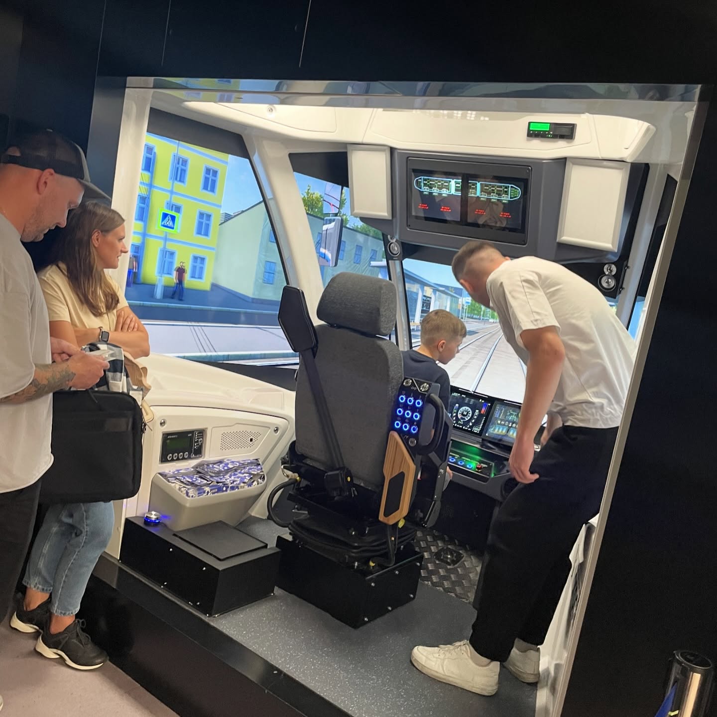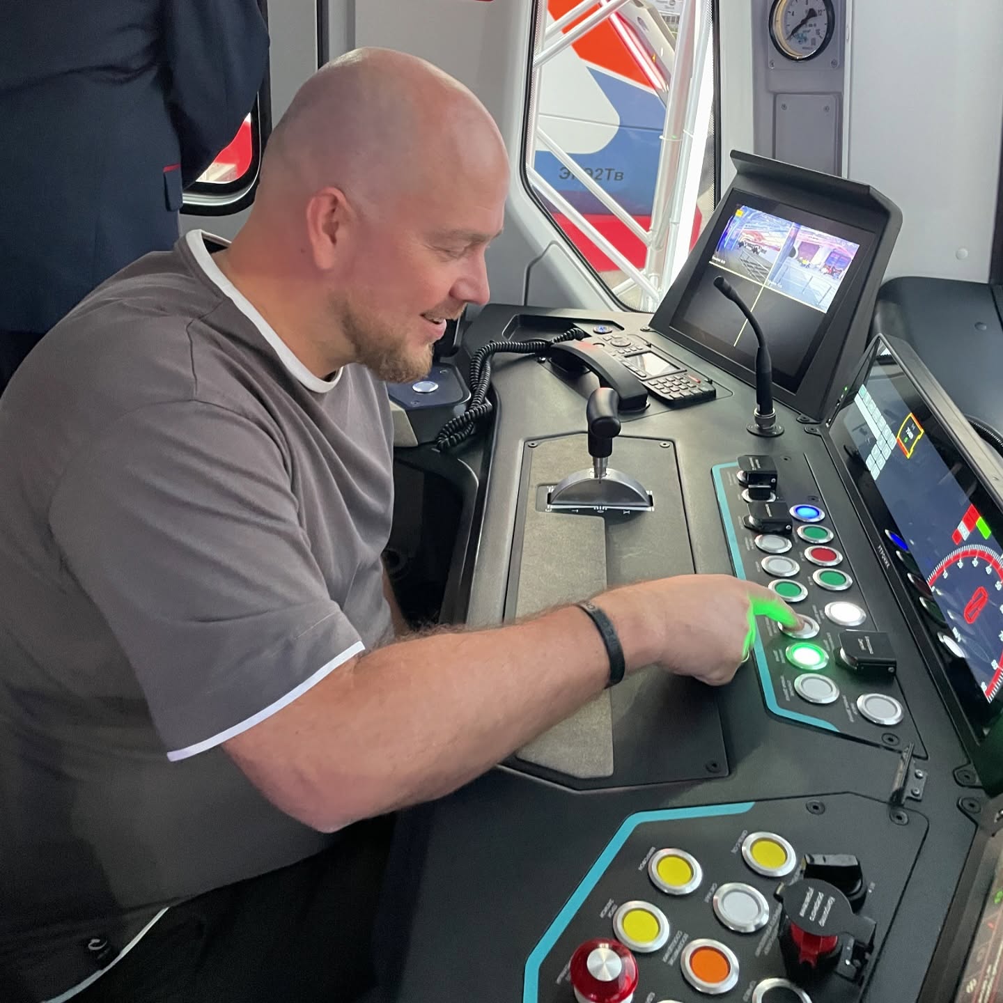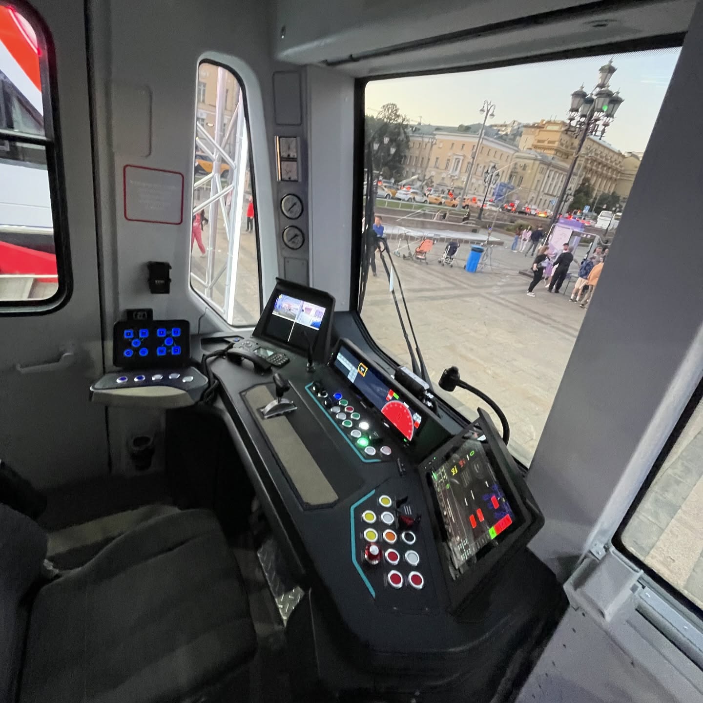 Тут у меня состоялось незабываемое двухминутное посещение кабины настоящего метропоезда Москва2024, где можно было всё нажимать и машинист отвечал на вопросы.
