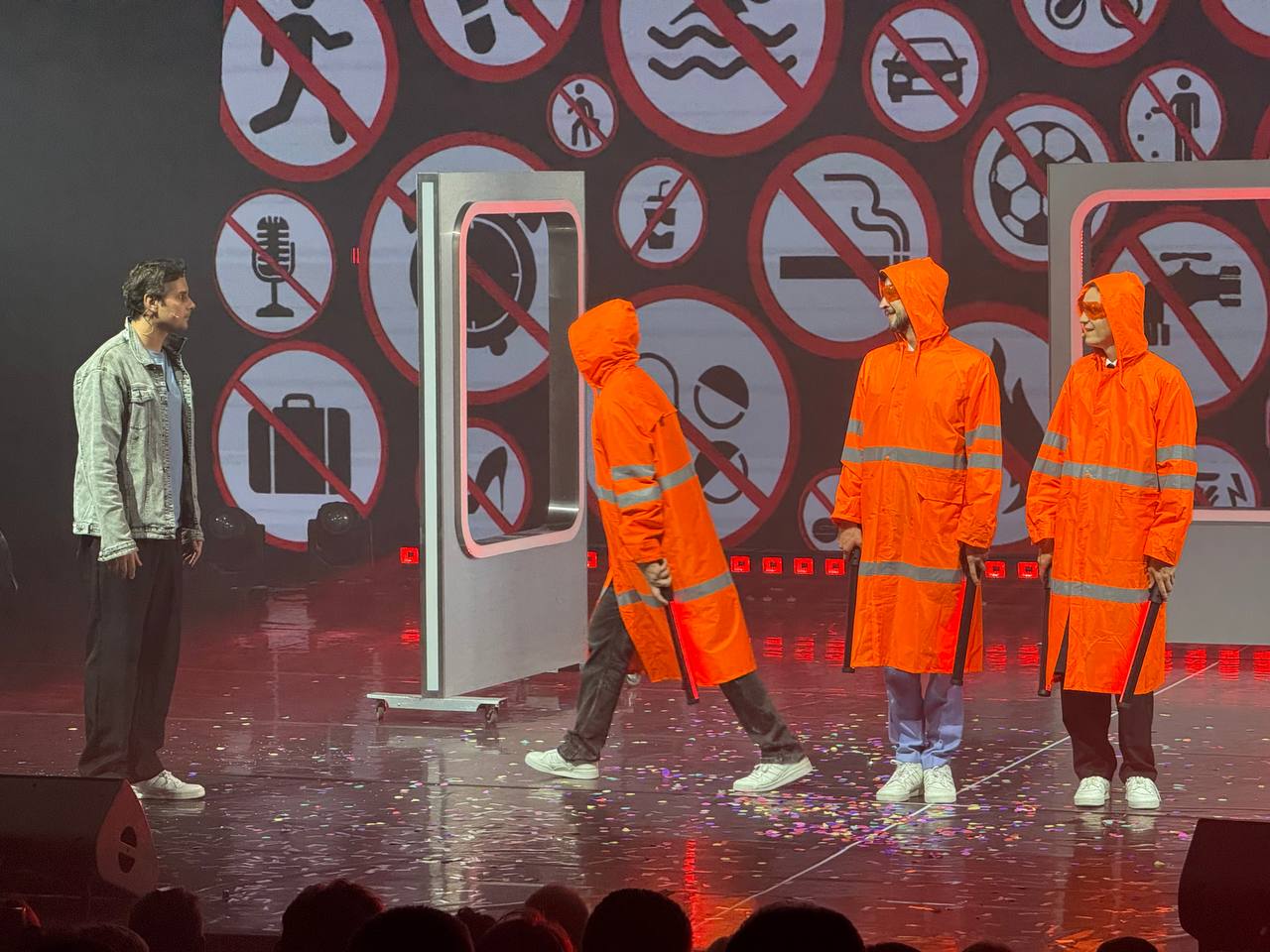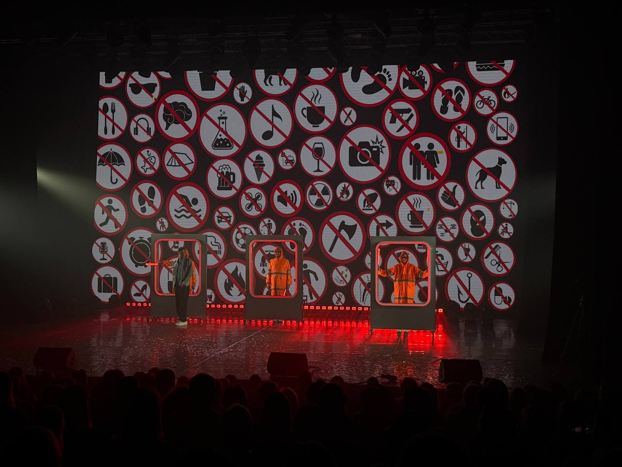 Работы чуваков в наиболее доступном публике рилс-формате мне попадались самизнаетегде, пару раз было даже смешно и интересно, но подписавшись я столкнулся с обычным ныне ежедневным цунами репостов-сторис и закономерно сбежал, после чего за ребятами не следил. А тут попал на полноценный спектакль — сюрпризно, по приглашению прекрасной феи мечт моих.