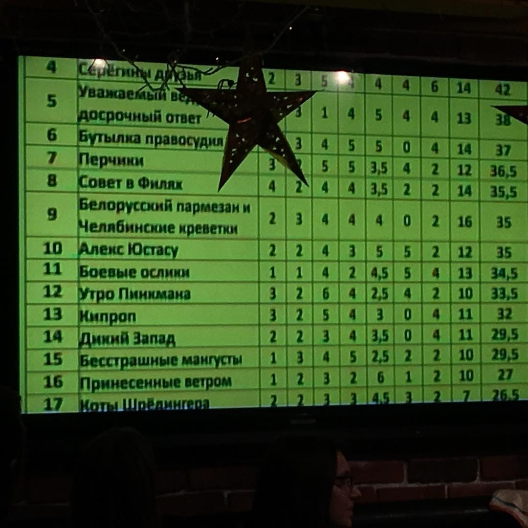 С пятого места после трёх туров — на двенадцатое!!! Один из худших наших результатов, и при этом первый приз за всё время: низверглись мы точно в середину таблицы. Так вот какие вы, смешанные чувства 😂😂.