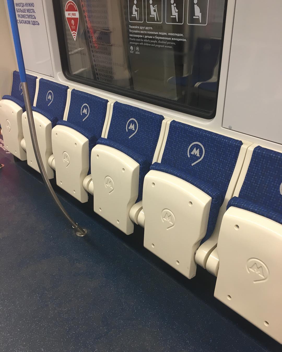 Чудесная Москва на филёвской линии: с потолочными ф-поручнями и одинарными стриптиз-пилонами, с креслами поперёк салона и ещё со складными сидушками. А ещё двери открываются по кнопке. Ну и моднейшие табло с анимацией присутствуют. Кайф!