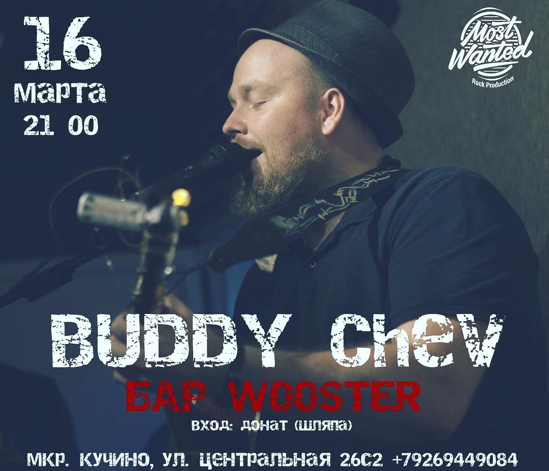 Друзья, долгожданный музыкальный анонс! В эту субботу, 16 марта, играю Buddy Chev в баре Вустер @barwooster в Кучино. Будет Нирвана и Боярский, реггей и рок-н-ролл, танцы на столах и хоровой хоп-хэй-лалалэинг — всё как надо. Друзей-музыкантов, у кого будет желание, жду на джем — приходите, эврибади, будет хорошо!