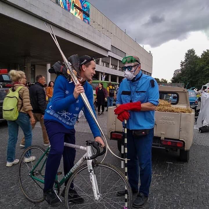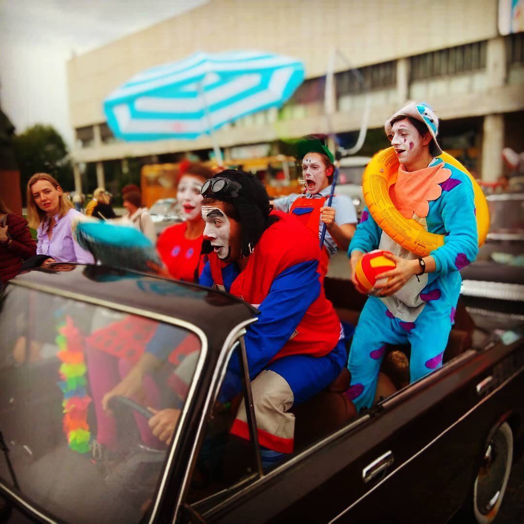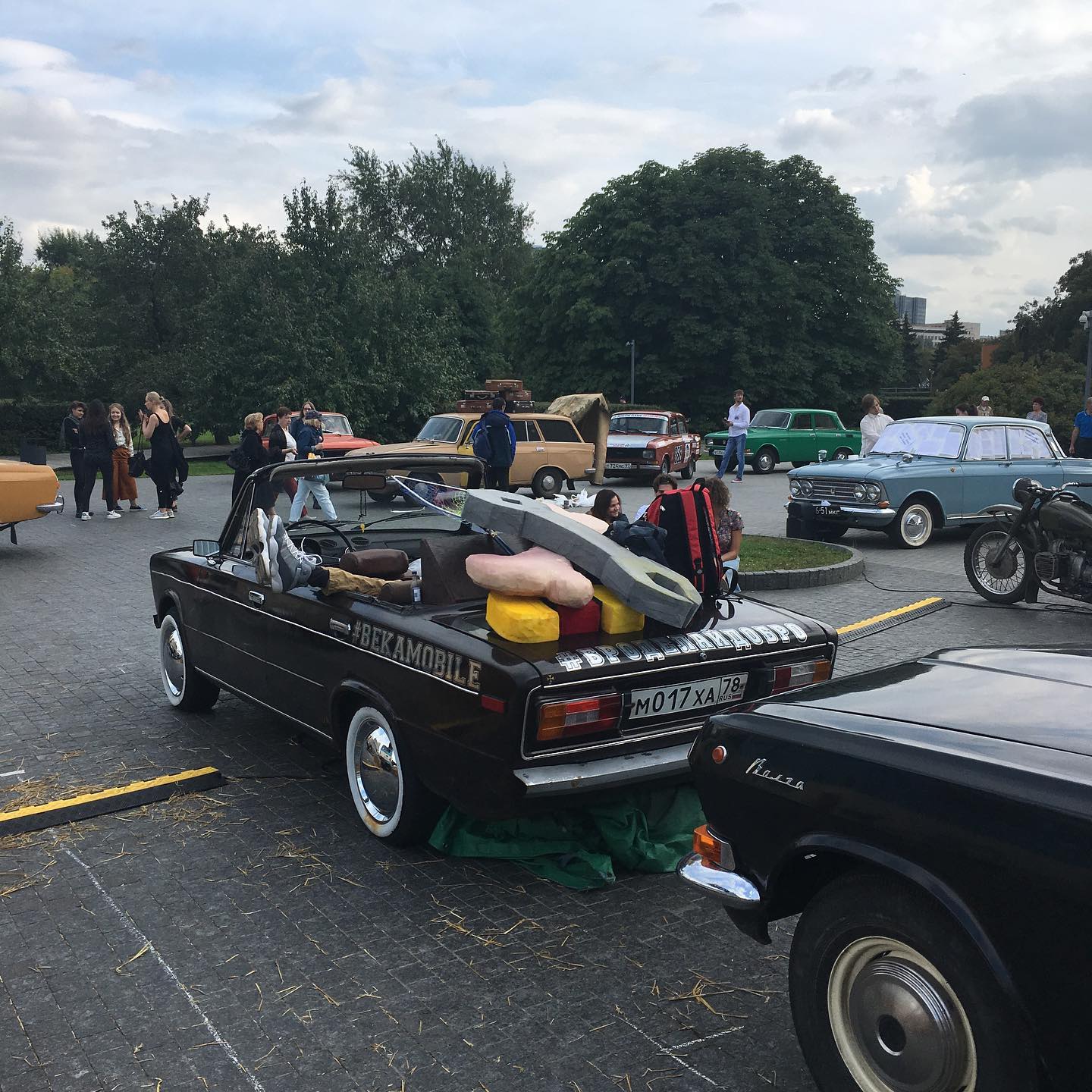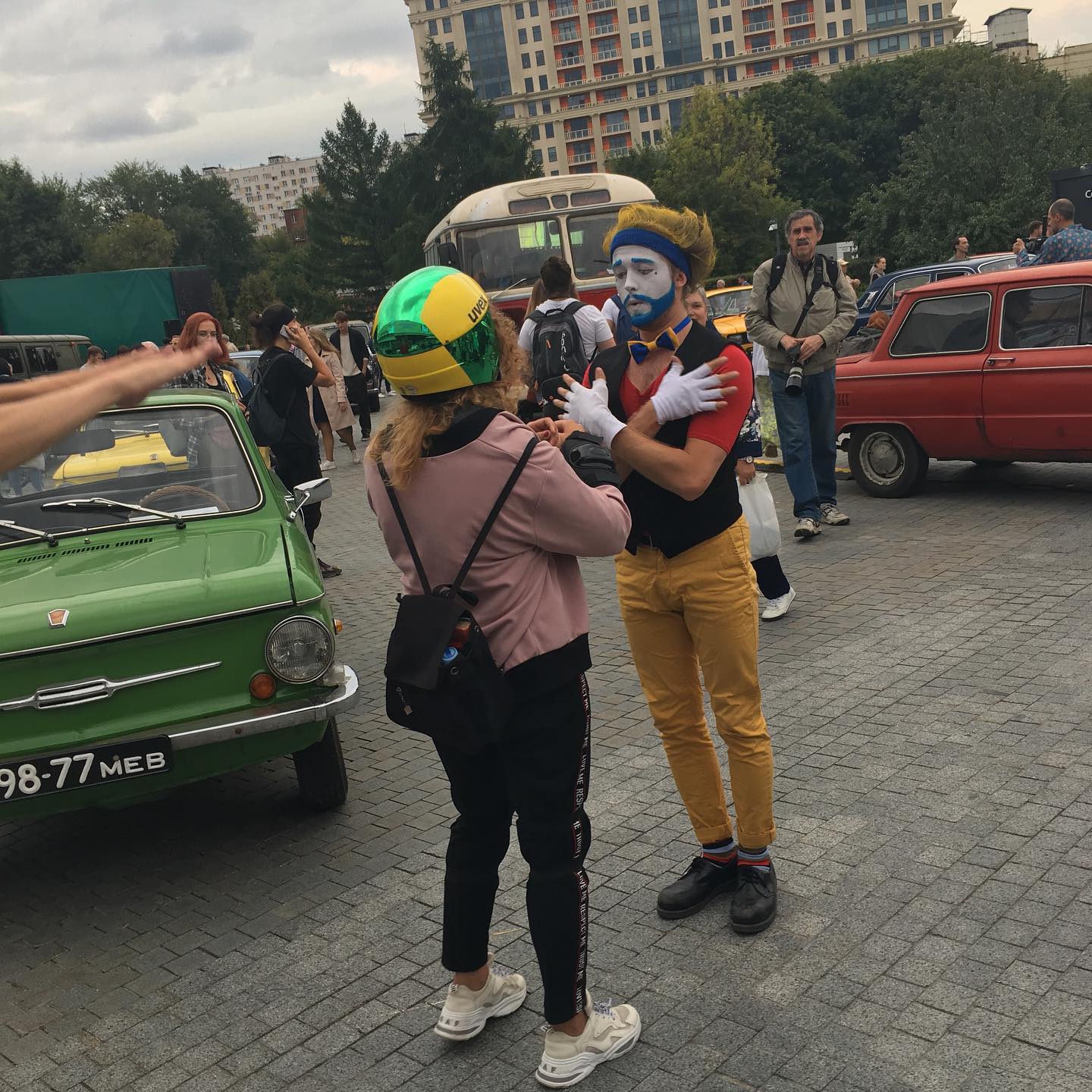 Площадка около ЦДХ, уставленная советскими автомобилями и автобусами. В них и вокруг них — пёстрая мешанина из мини-спектаклей, перформансов, инсталляций: вот несколько мимов беззвучно матерятся в москвиче на воображаемых пешеходов, вот Он в костюме из 60-х признаётся Ей в любви, вот из шестерки, переделанной в кабриолет, под звуки шторма актеры брызгают в зрителей водой, вот женщина ходит среди толпы на лыжах, а её партнёр натирает брусчатку перед ней как в кёрлинге, вот Айседора Дункан безуспешно пытается выпутаться из ленты шарфа, застрявшего в колёсах автомобиля. Среди всего этого безумия — ошалевшие зрители.