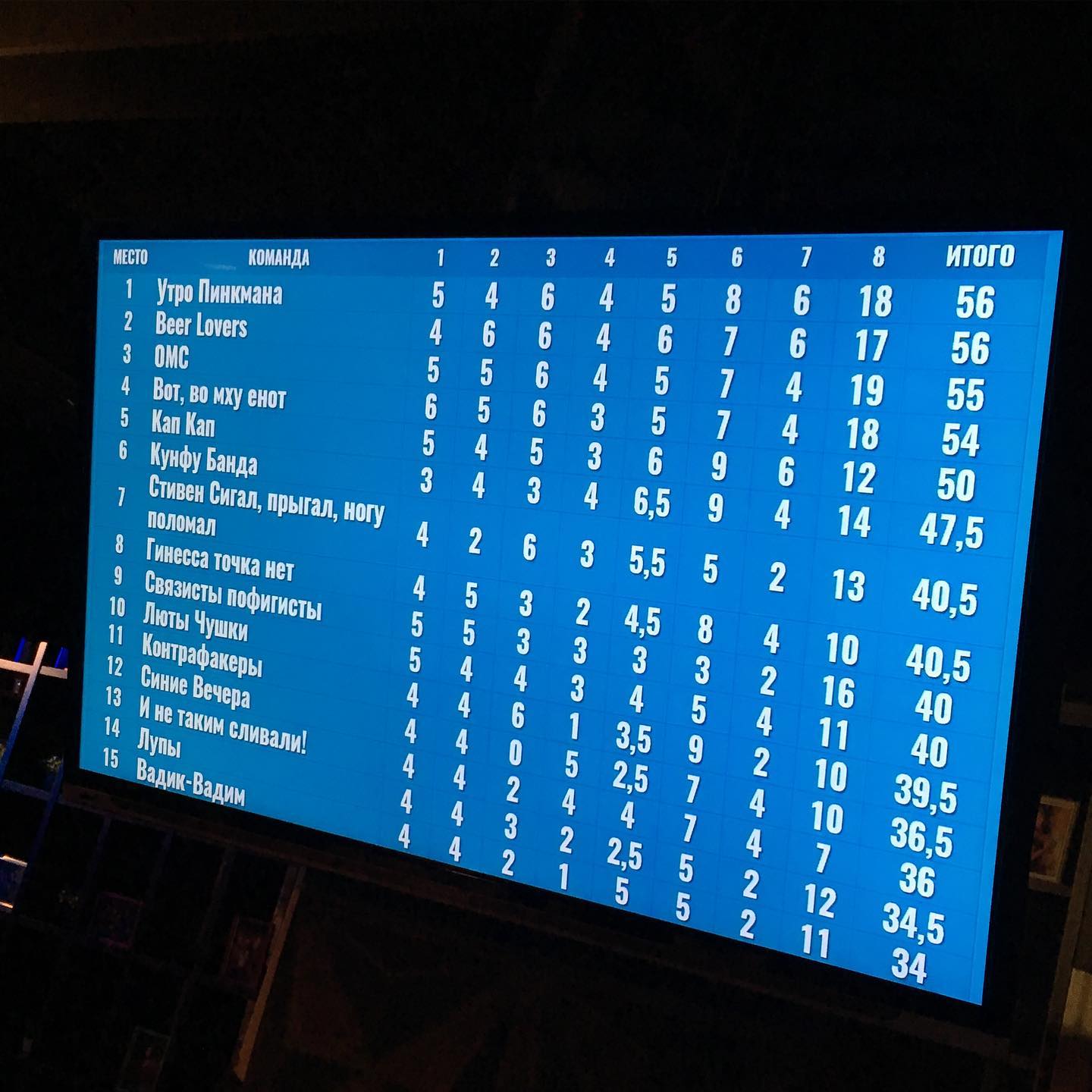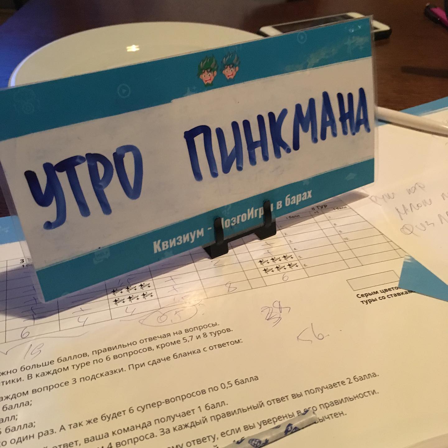 Очень крутая и плотная вышла вчера игра: не взяли только пару вопросов из тех что должны были брать (Ивана Василича с кинжалом запомню навсегда), вытащили на интуиции пару вопросов которые просчитать было невозможно, набрали какого-то дикого хода в финальном туре, отвечая всё влёт, и в итоге финишировали первыми, обойдя ближайших конкурентов лишь по порядку баллов в этом самом турбореактивном последнем раунде.