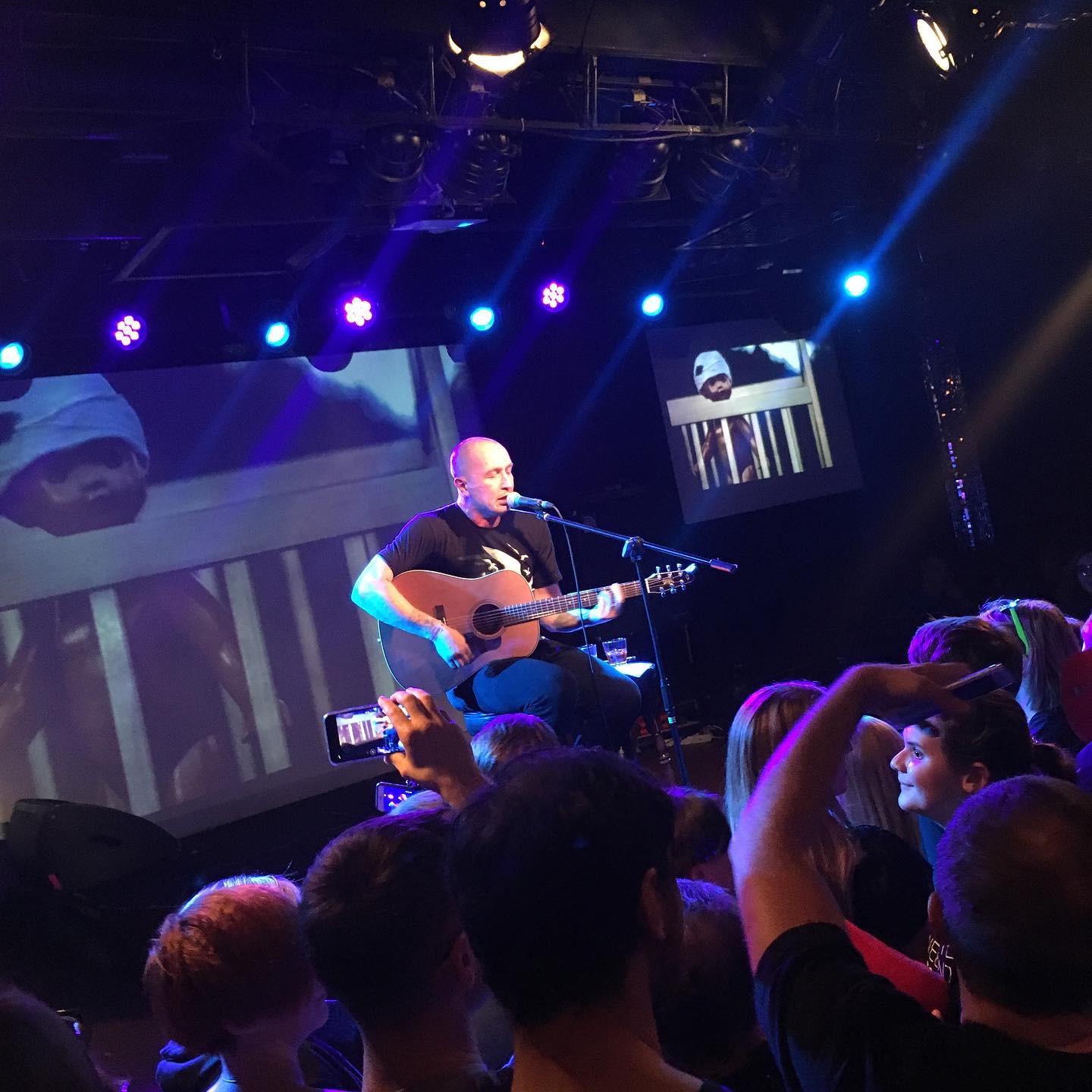 Клуб битком, билеты по косарю — и это на какого-то блин гопника с гитарой? Слэм под акустику? Хоровое пение моби вперемешку с матерными тревожными рэпаками? Троица в смирительных рубашках на сцене??? — В Тоннах мне всегда попадаются неприветливые охранники, тем приятнее было вчера видеть их максимально недоумевающие рожи. Да, чуваки, это к вам @deercemetery занесло, привыкайте.