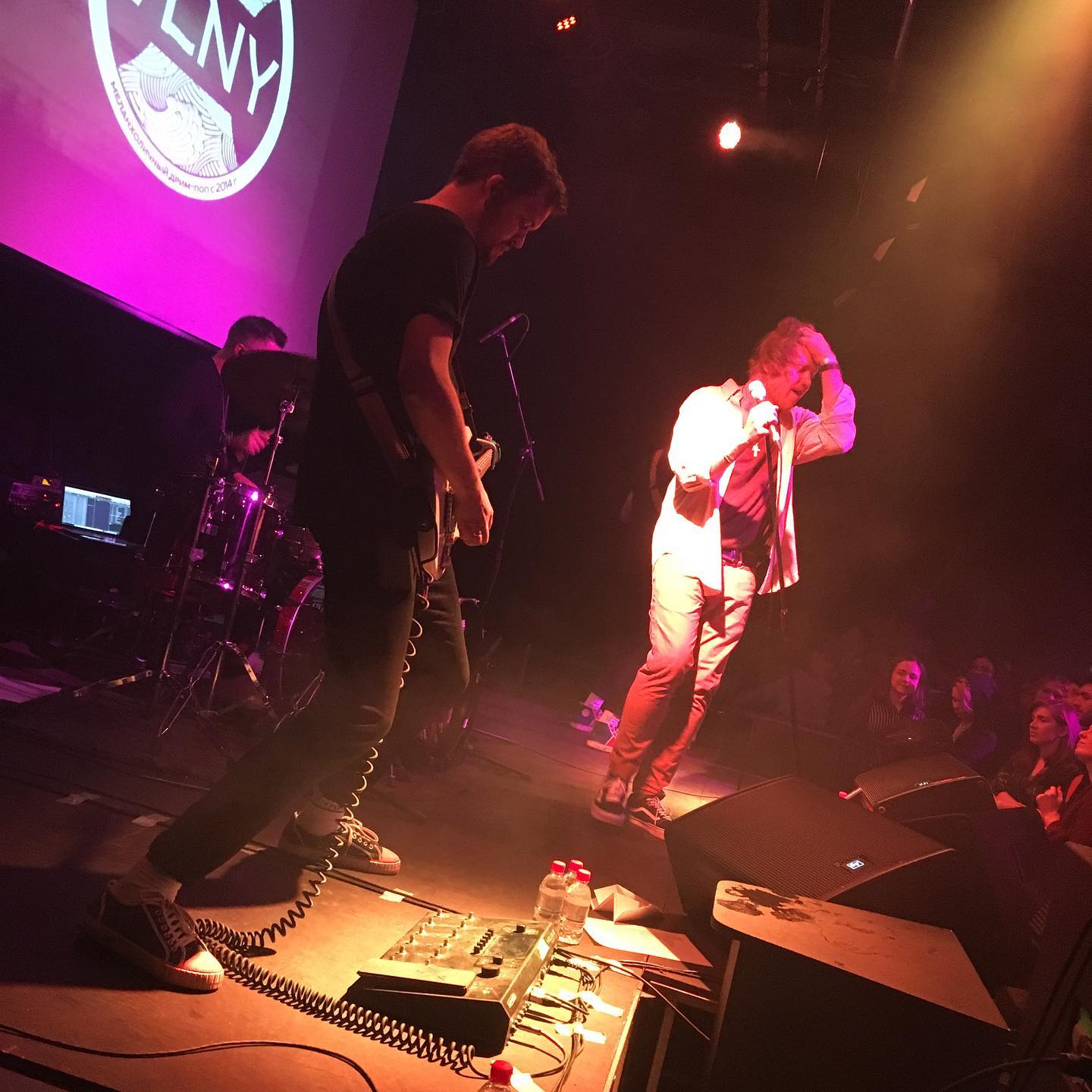 Площадка Агломерат похожа на другие московские залы среднего размера, в том числе и главным косяком подобных мест — никакой производительностью входа и контроля, и дикой очередью. Звук был норм, света небогато, но и на том спасибо. Было хорошо!