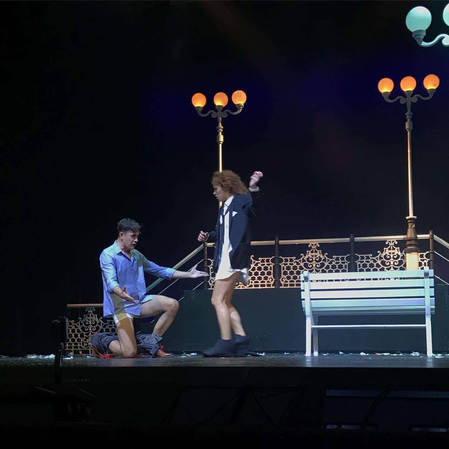 Спектакль идёт под живой аккомпанемент от @FireGranny, которые вписаны в действо но постоянно балансируют между двумя сторонами четвёртой стены, и от нахождения от них в какой-то паре метров было удивительное чувство попадания внутрь происходящего. Сами ребята страшно харизматичные и убойные живьём, рад что случайно попал на них на Платформе этим летом.
