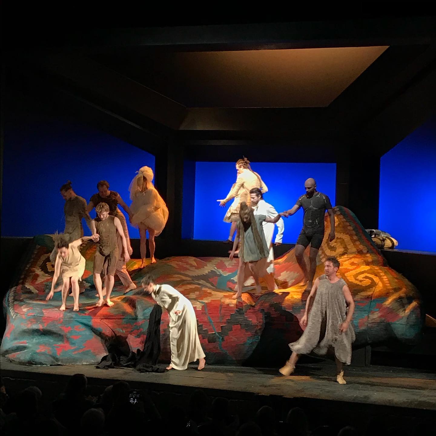 Посмотрел в отличной компании спектакль Мастерской Петра Фоменко «1001 ночь» — отдельное спасибо друзьям за идею вечера. Восхитительно как звуком и цветом при статичной декорации создаётся движение и общее впечатление, понравилась пластика и ловкость актеров (как они умудряются так скакать и не ломать руки-ноги?), и сопровождение струнным оркестром. Здание необычное, с многоуровневым холлом и пространствами, вижу такое впервые.