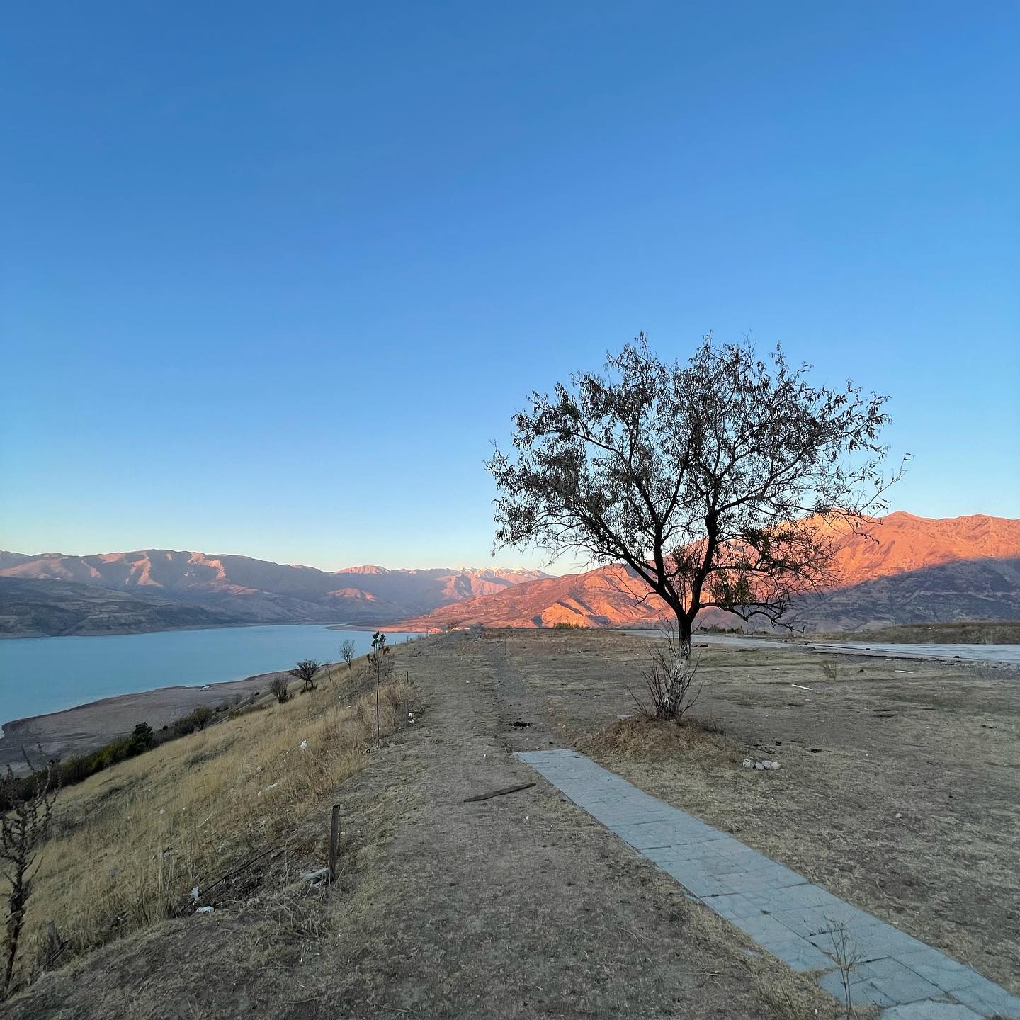Город осмотрен из окна бусика, в первый день прокатились в горы, поглазели на Большой Чигман и Чарвакское водохранилище, поужинали в кафе Арбат на Бочке, с топчанами, чаем и шашлыком, и умчали отдыхать. Завтра утром поезд на Самарканд, а часы тут +2 к Москве, так что надо успеть восстановить силы