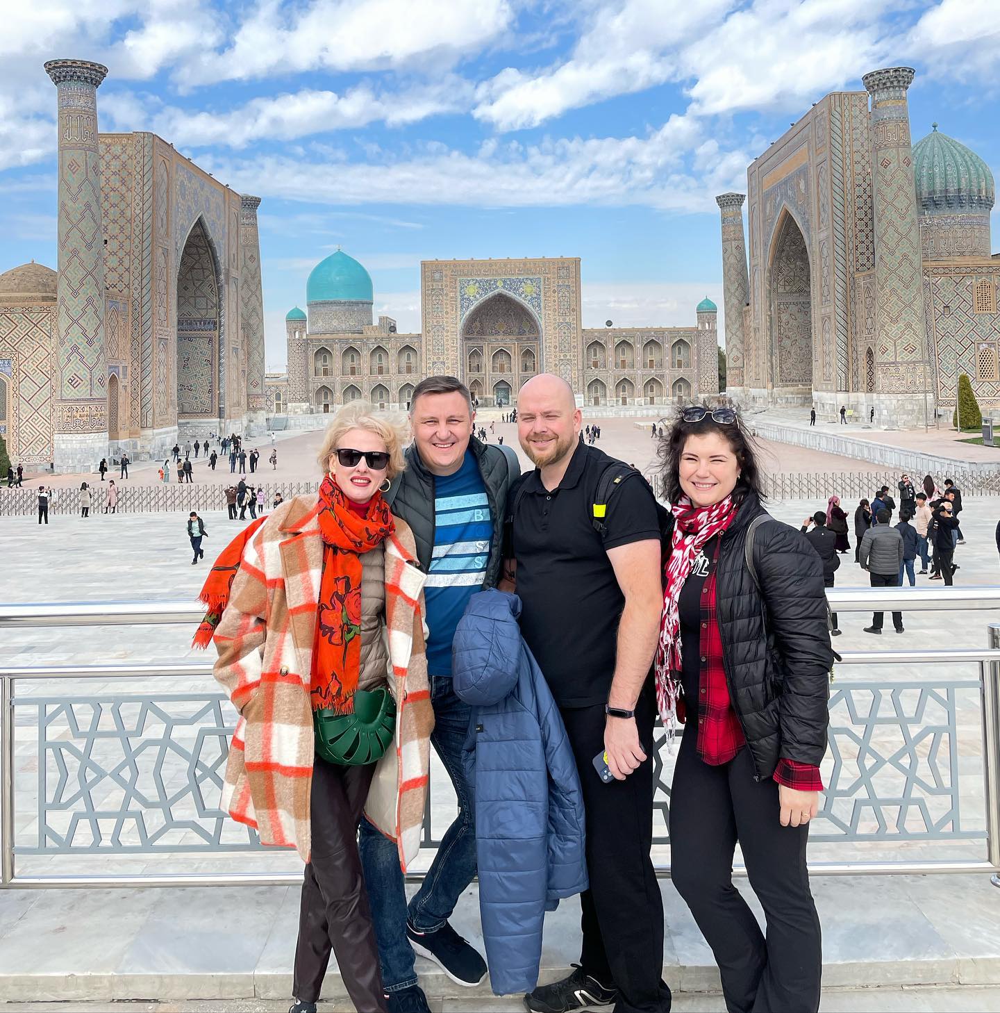 Завтрак и телепорт через степи и сопки на скорости 230км/ч в Самарканд. Встреча с гидом и целый день плотнейшей программы по древним жемчужинам города — Гур Эмир, Регистан, Биби Ханум, комплекс Шахи Зинда. Мощь и монументализм, паттерны и узоры, квадраты и восьмиугольники, бесконечно высокие своды и низенькие резные дверцы, дыхание и неумолимость времени