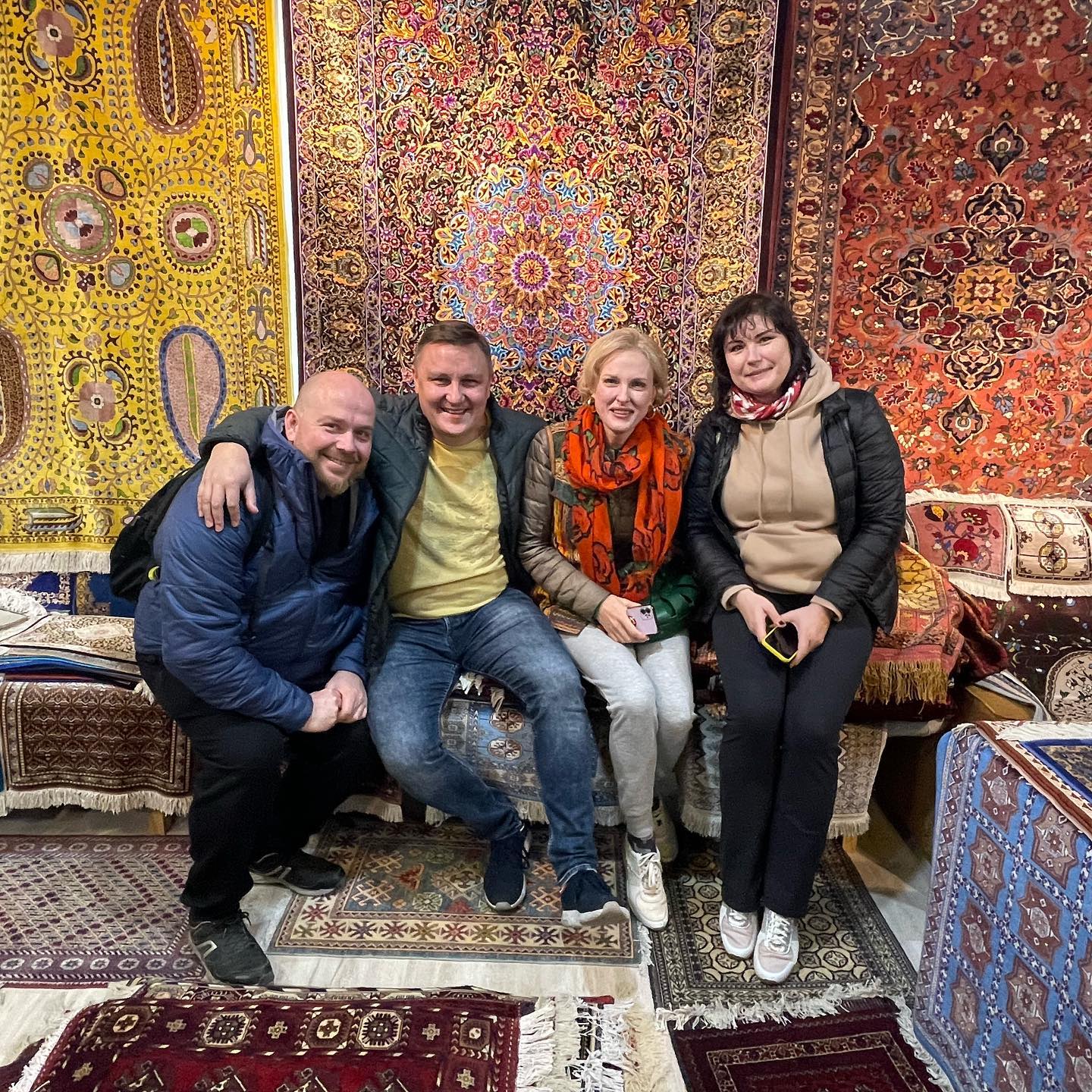 Отправились на фабрику ковров, узнали секреты производства изделий из шёлка и шерсти, как отличить ручную работу от машинной, и как выглядит шедевр за 🍋₽. Впечатляет кропотливость, ловкость и сложность труда мастериц — ну-ну, расскажите мне теперь про невыносимость токсичного баристы в кофейне рядом с вашим любимым коворкингом.