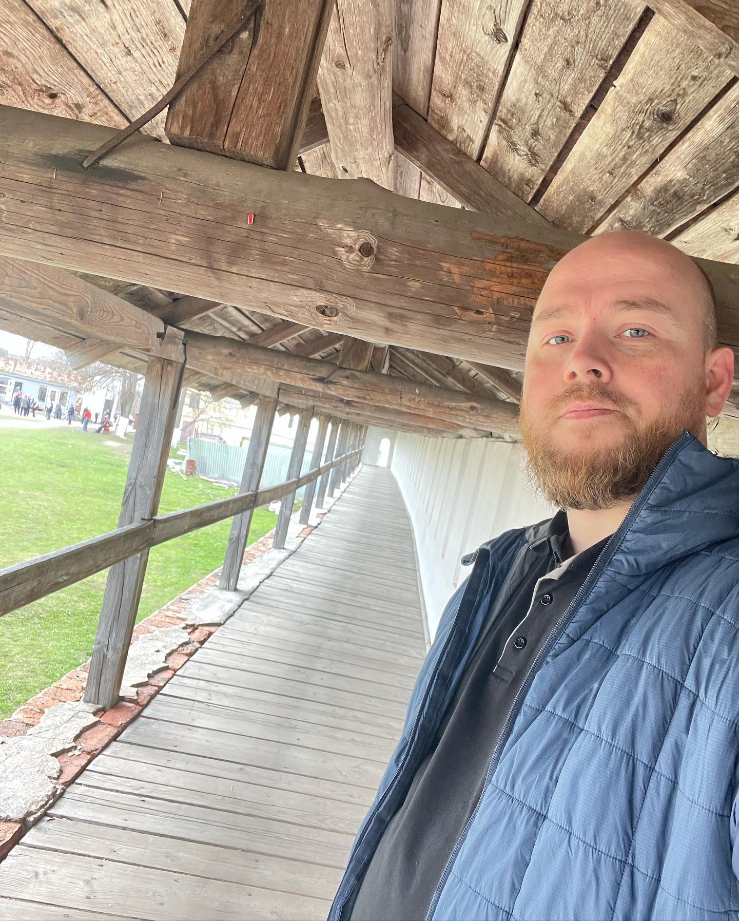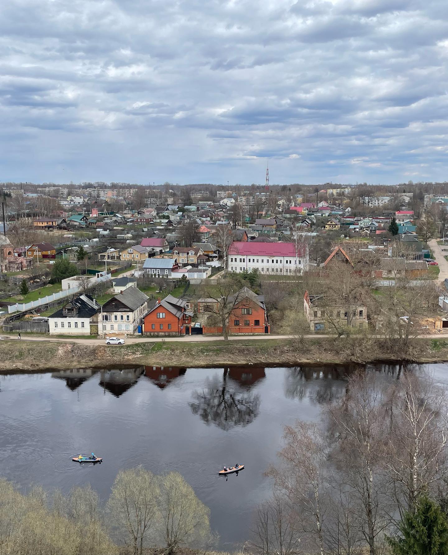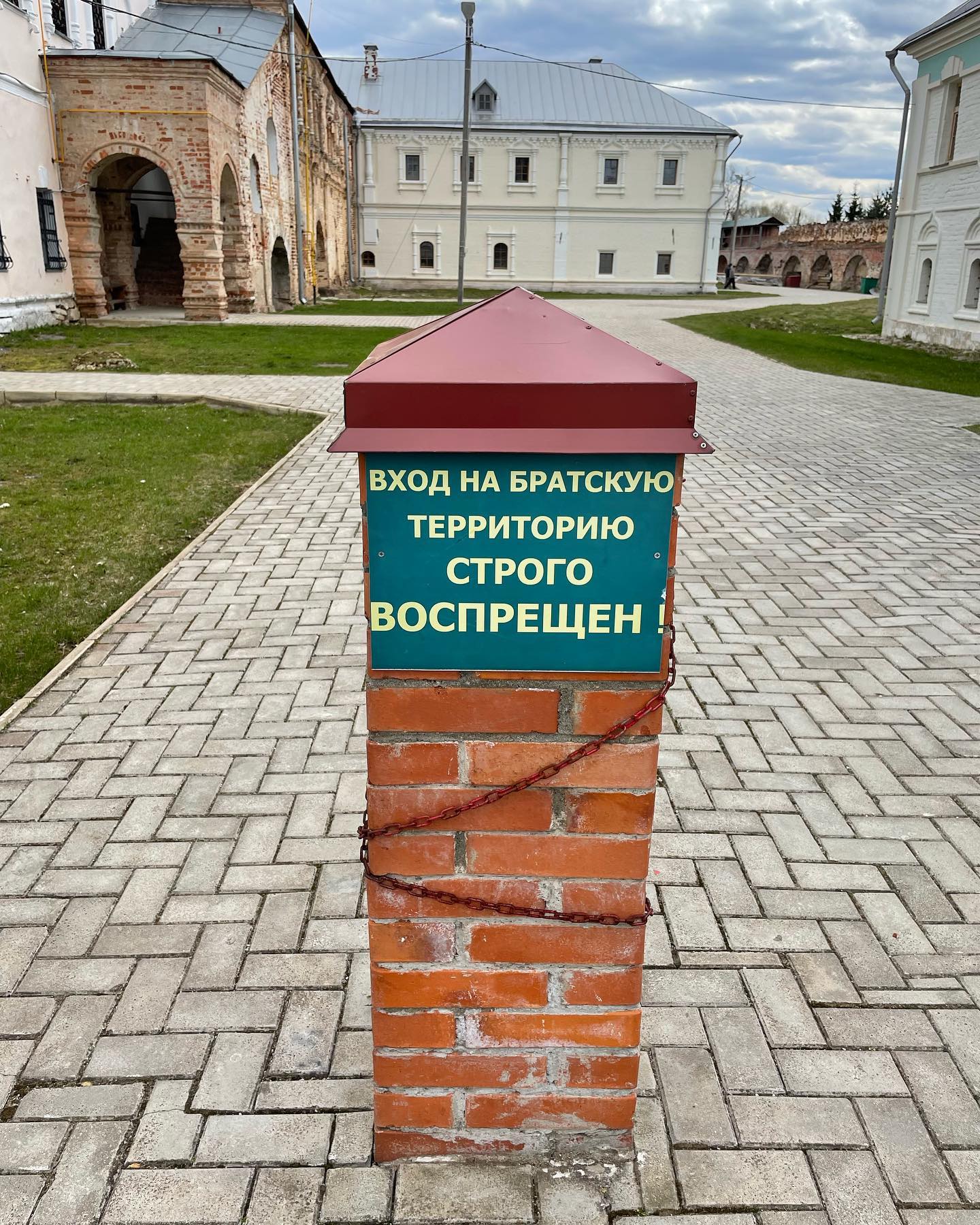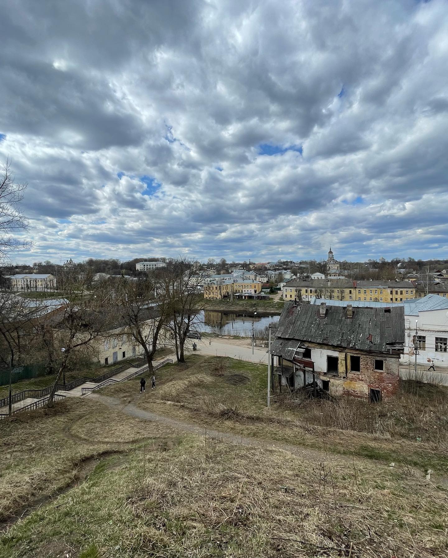 Узнал что вход на братскую территорию строго воспрещён (евпочя). Заплатил чёрным налом без чека 100₽ тётеньке за вход на колокольню. Посмотрел на город и окрестности, байдарочников на реке и руины на территории. Встретил наверху сумасшедшую туристку, громко спорившую с голосами в голове. Удивился росту древних монахов — потолок навеса над крепостной стеной монастыря удивительно низкий.