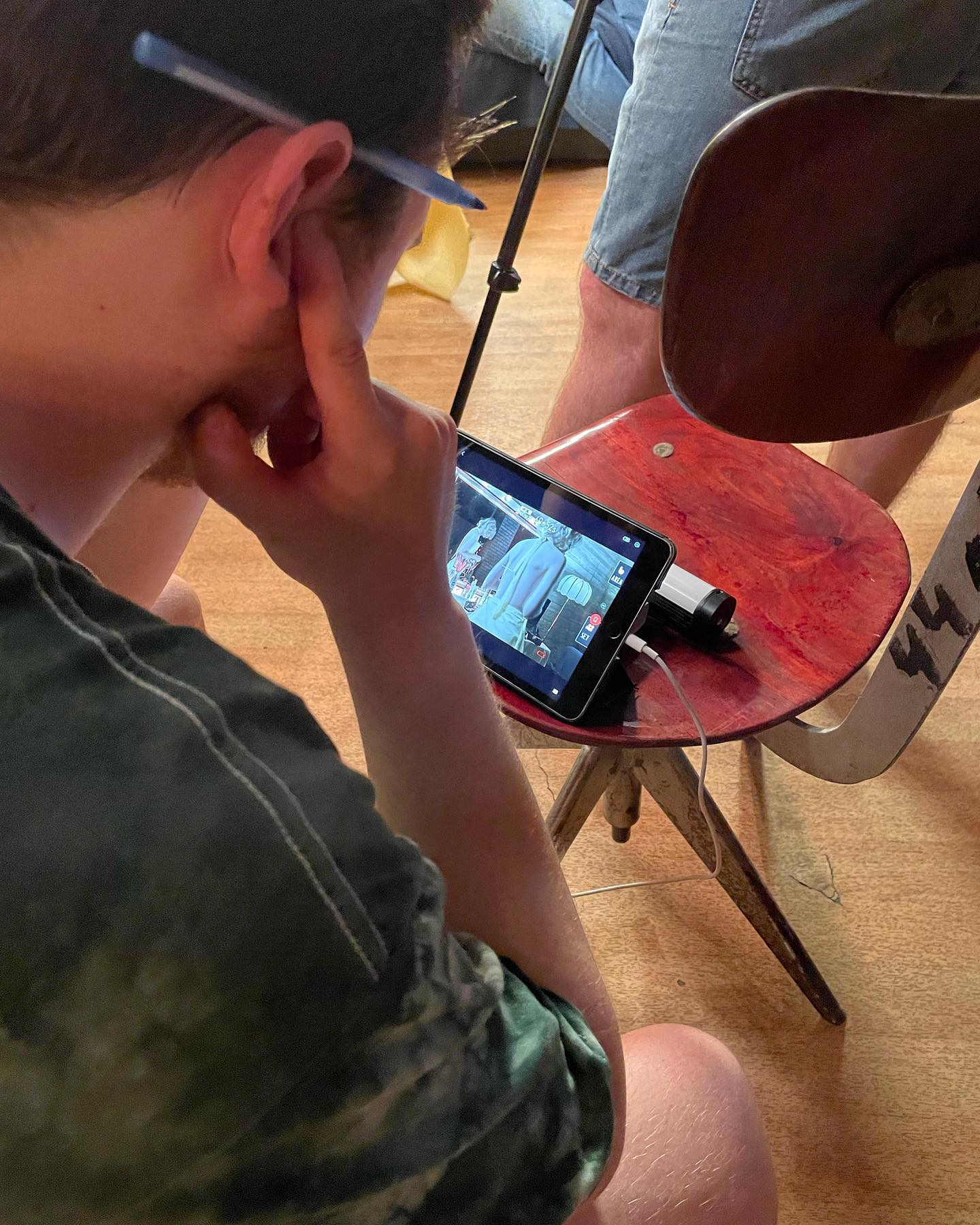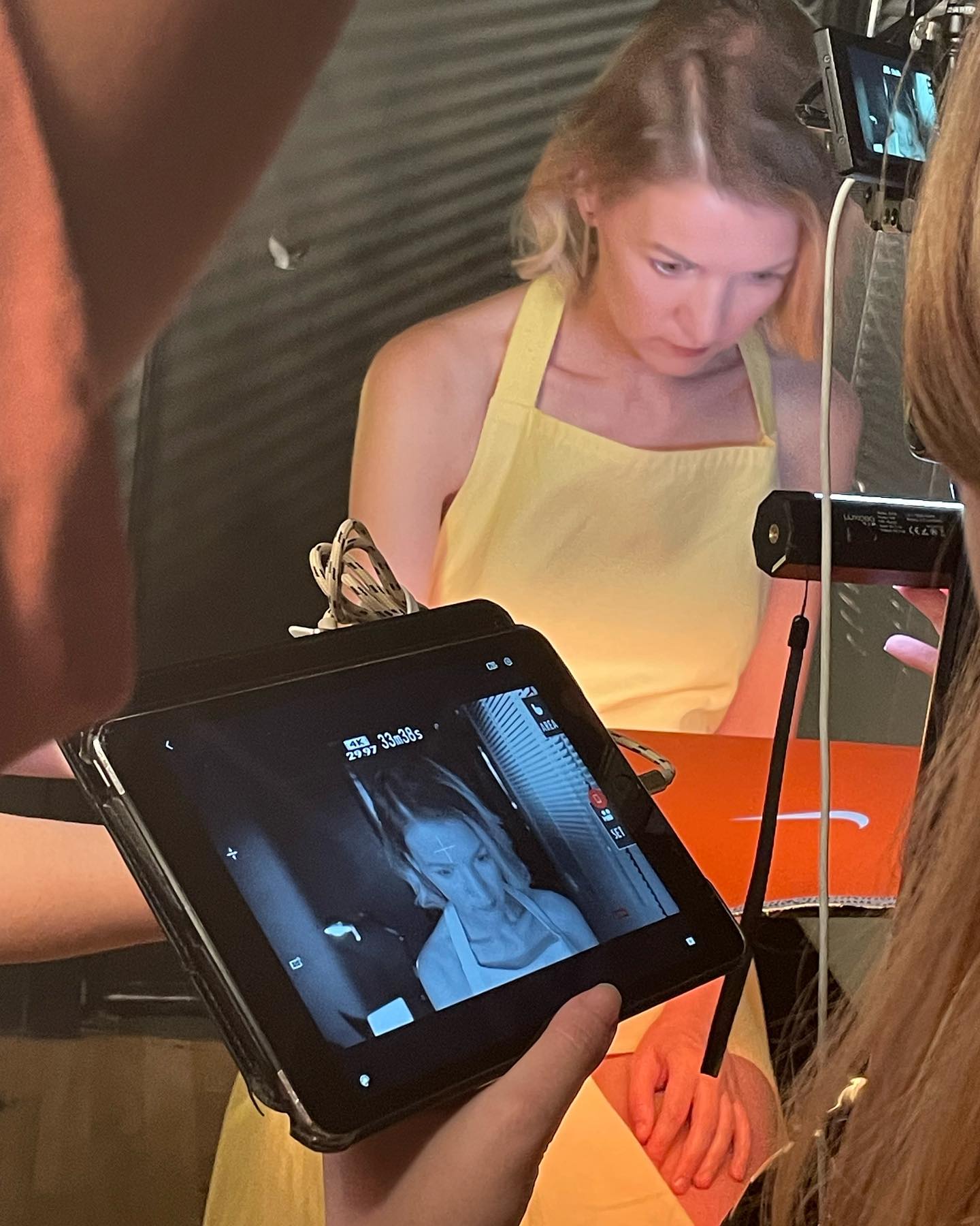 Мне посчастливилось попасть в команду производства на один из двух съёмочных дней — я помогал на площадке, двигал мебель и свет, включал музыку, был водителем и грузчиком для части бригады и декораций