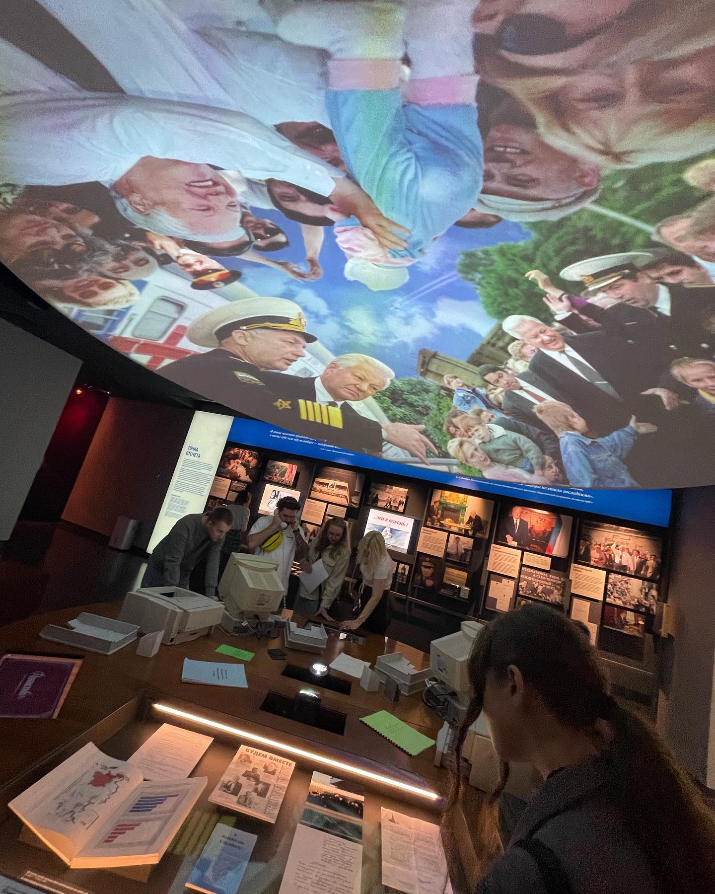 Сходили в Ельцин-центр. Крутое здание, с множеством классных пространств кроме собственно музея. Классная реализация в самом музее — здорово сделано технически, с кучей деталей времени типа сигарет Salem и мониторов 3Ne Low Radiation, с фотками видео и полуинтерактивными инсталляциями.