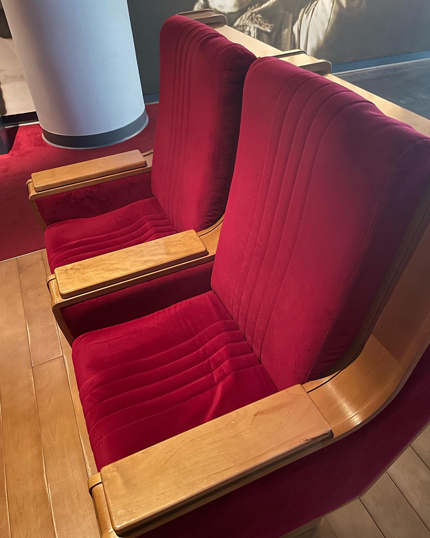 Отдельный кайф — кресла из кремлевского дворца, помню их по ёлкам, только выдвижные полки-столики в подлокотники вклеили антивандально.