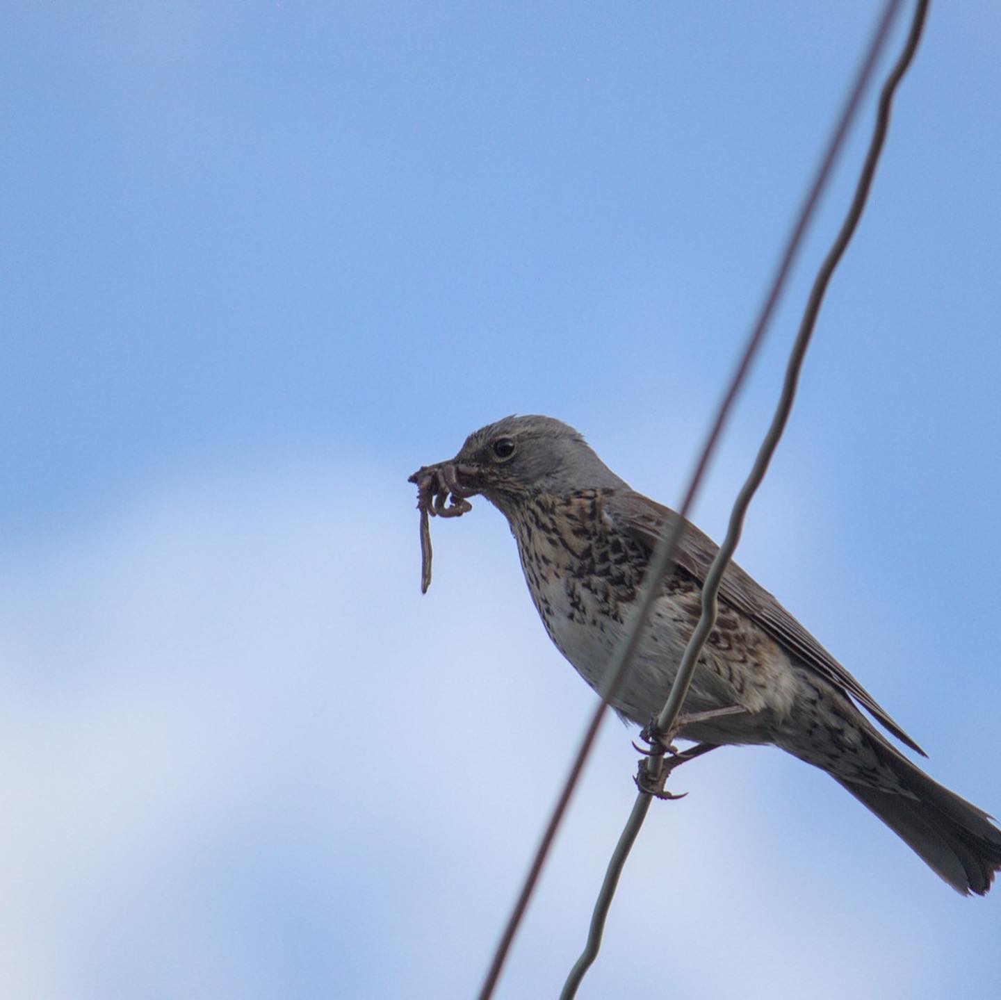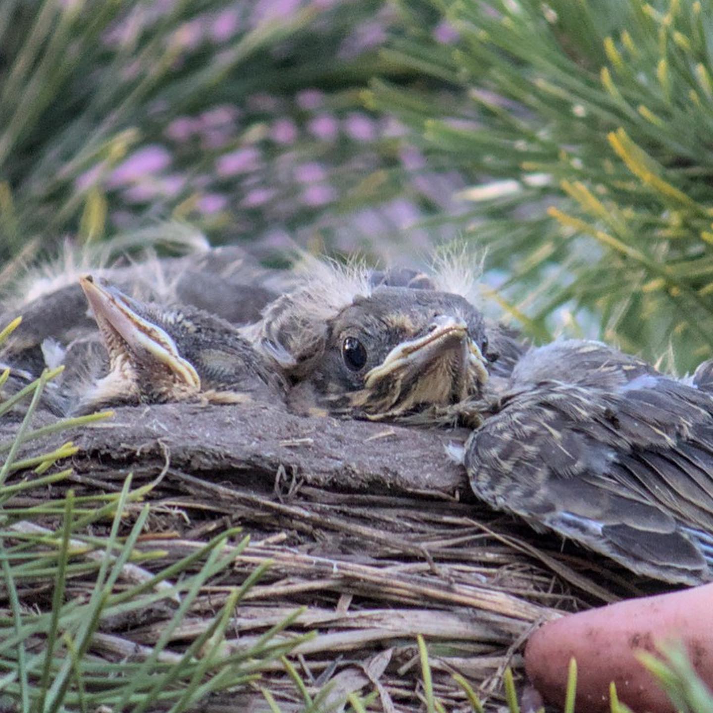 Дрозды ведут себя по-хозяйски: гоняют других птиц, таскают без отдыха червяков, орут на людей при приближении к сосне.