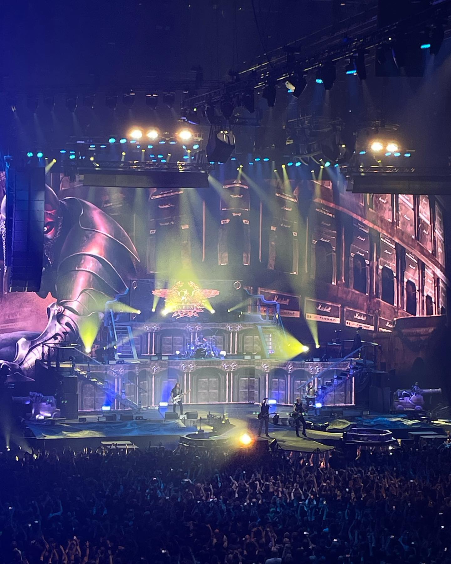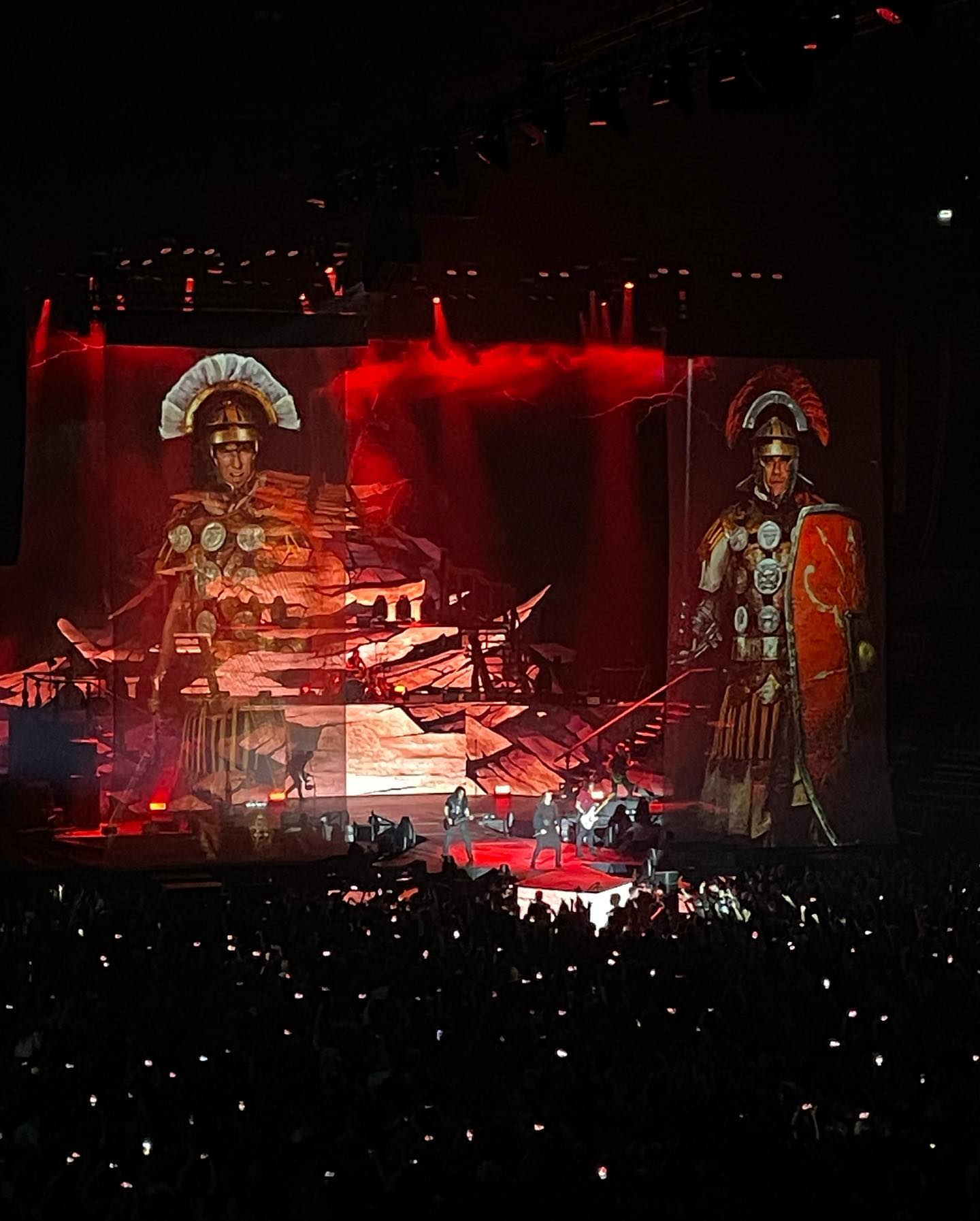 2:10 угара, диких запилов, синхронной тряски патлами, полетов над залом всей группой и солистом в одиночку, столбов огня и выстрелов пушек, всё под умопомрачительный видеоарт и выжигающий глаза свет. Для московского шоу в последней трети концерта подтянули симфонический оркестр (причем конкретно так под него адаптировали аранжировки), на несколько треков позвали Маврина (в акустике там правда что-то чудное прозвучало), плюс прошлый вокалист Беркут спел сольно под фортепляс в лучах прожектора посреди зала, и в нескольких треках потом вышел на дуэт. Короче фансервис невероятный.