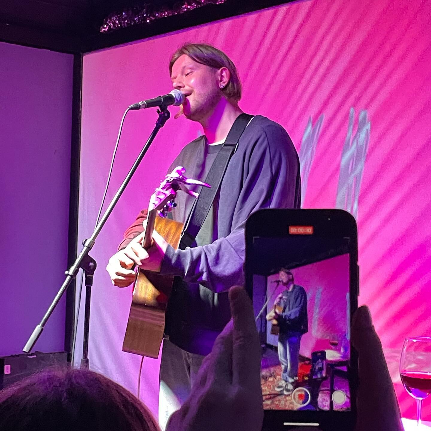 Впервые я открыл для себя @vlny_official весьма случайно — просто зашел после работы в Джао Да на рандомный концерт в феврале 2016-го, и это тоже была сольная акустика. Помню до сих пор восторг, и почему-то особенно место в зале, где стоял. После ходил несколько раз на электричество, ну а в эти праздники повёл Дусю на акустику уже осознанно, за тем самым особым вайбом.