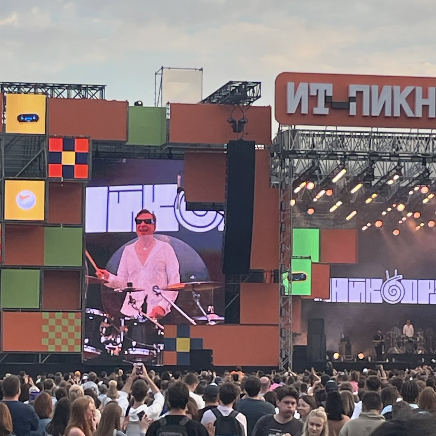 Впервые видел живьем Найка Борзова — вся банда шарашит на высочайшем уровне, плотнейший звук и вайб настоящего рок концерта, ну и финал с соло Найка на барабанах — восторг. Трогательное поздравление с ДР Корнея, игравшего на гитаре. Изящная замена слов в строке «Но работа важней за спиной группа куин».